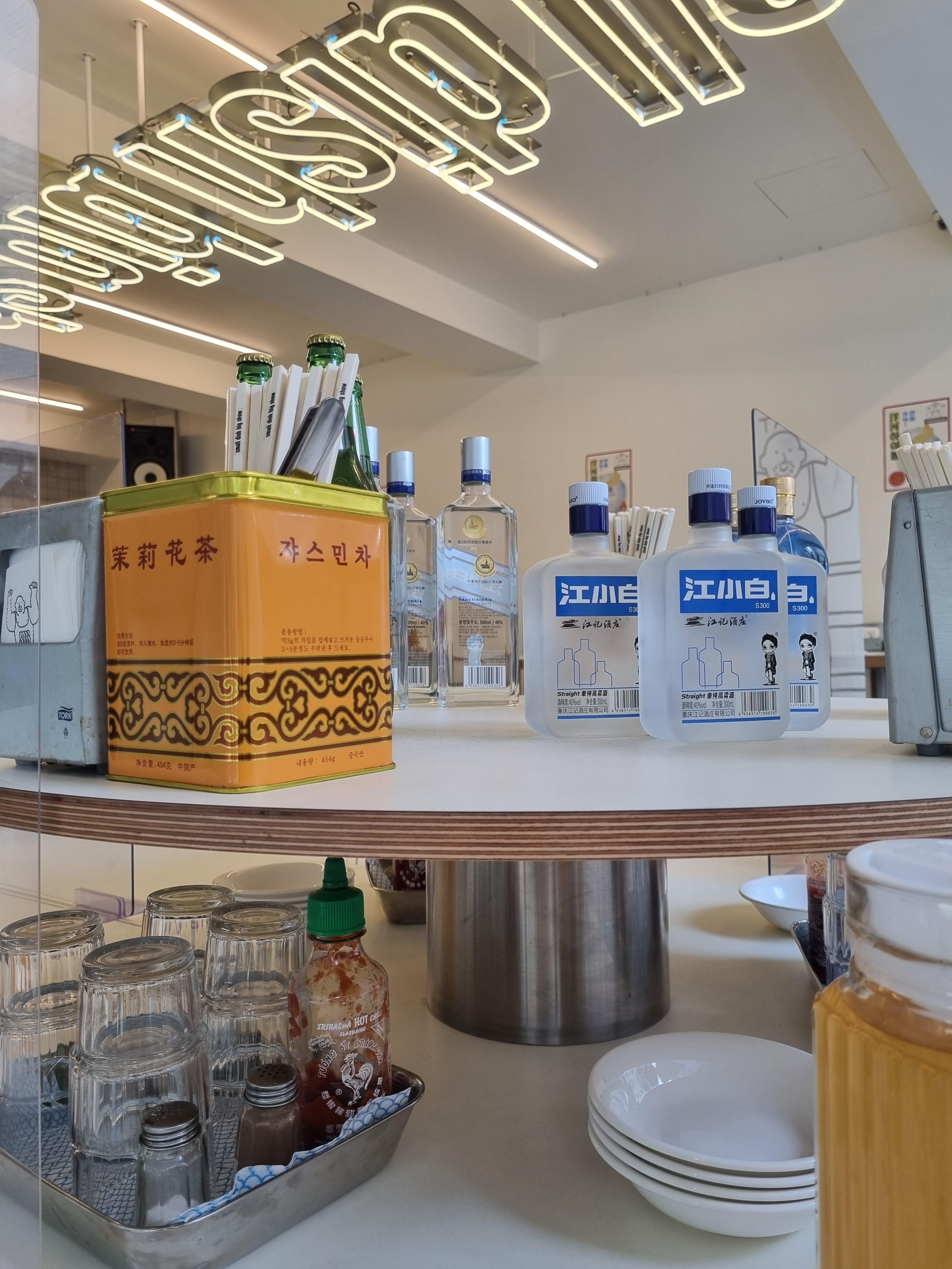 테이블이 좀 독특하달까. 일단 4명이서 앉는 테이블에는 2명은 못앉고, 2명은 원형테이블에 안내해주신다. 투명 가림막이 있지만 모르는 사람들과 거의 마주보는 수준으로 먹게 되며 원형이라 일행보다는 다른 사람들과 함께 먹는 기분이 든다.
