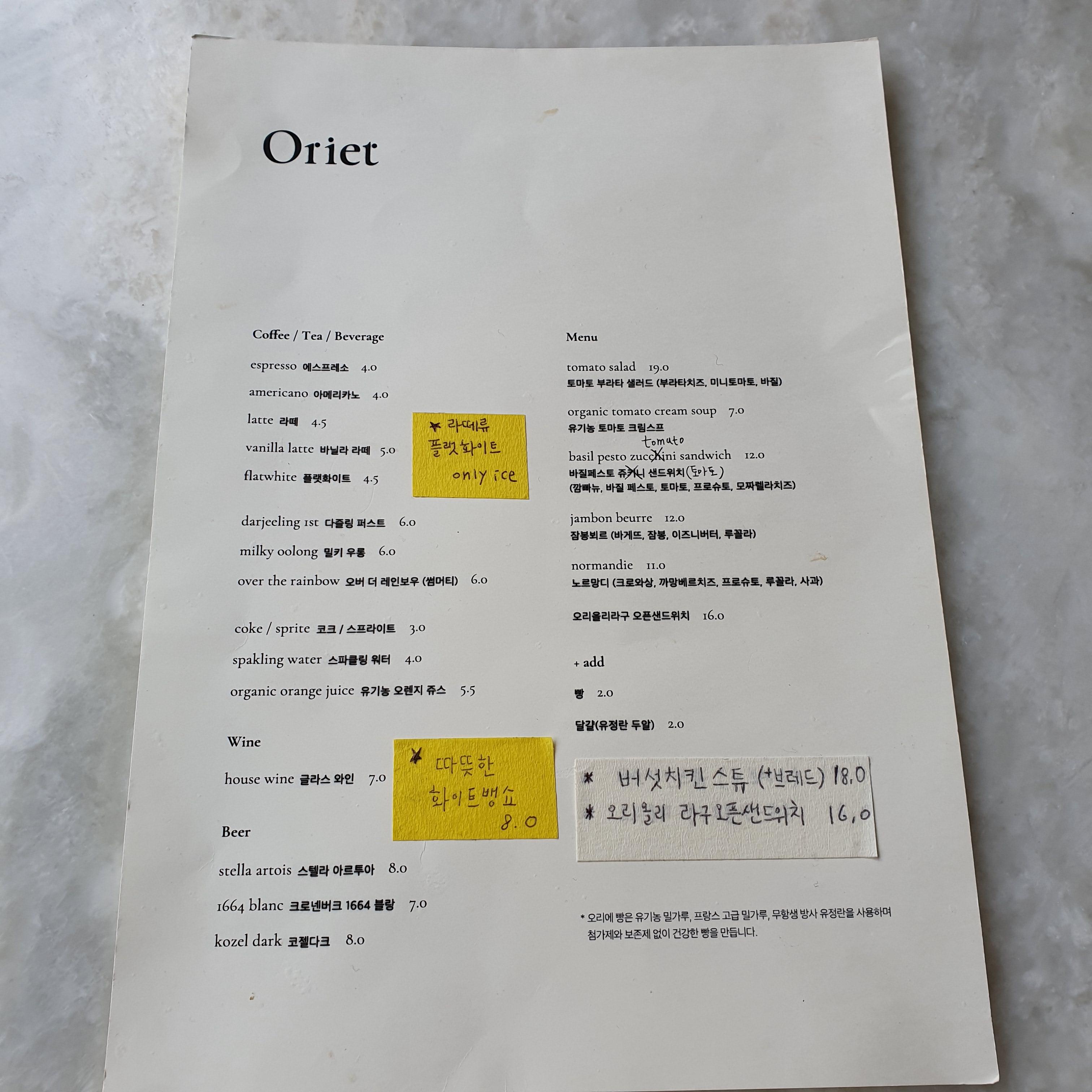 인스타에서 우연히 비쥬얼에 반해 방문하게 된 오리에. 샌드위치를 좋아하는 편이라 다양한 샌드위치를 맛보고 싶었다.