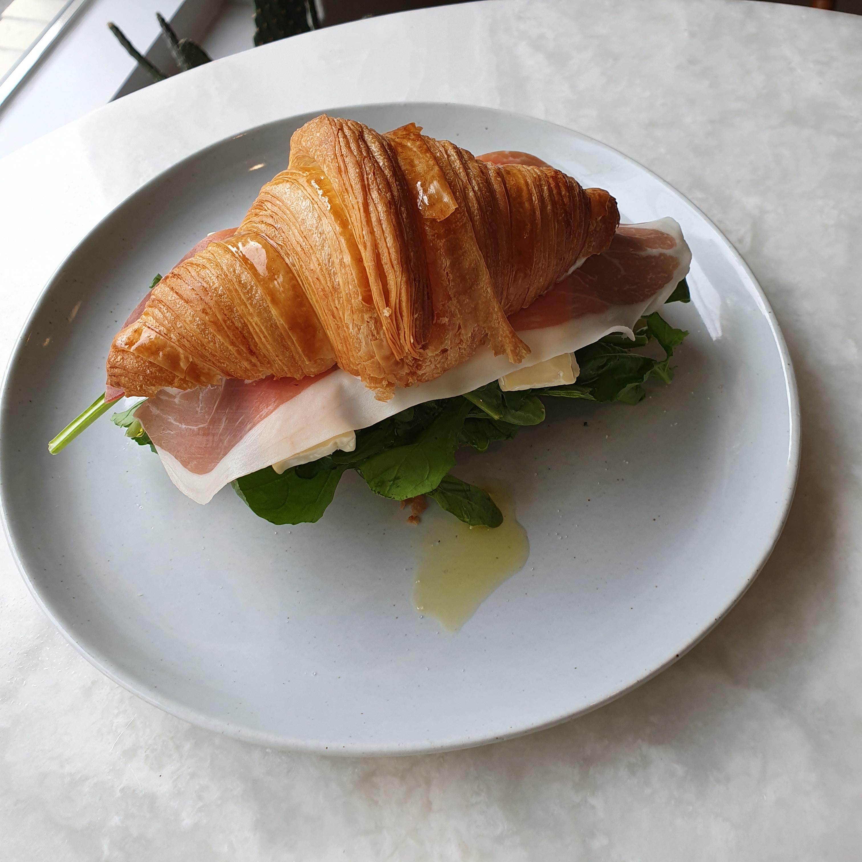 크로와상에 까망베르치즈, 프로슈토, 루꼴라, 사과를 곁들인 샌드위치다. 직접 만든 크로와상이라 그런지 더욱 고소하고 신선했다. 큼지막한 크로와상 샌드위치라 사실 이거 하나만 먹어도 배가 부를 정도였다. 욕심내서 부라타 샐러드를 먹으니 배가 엄청 불러왔다.