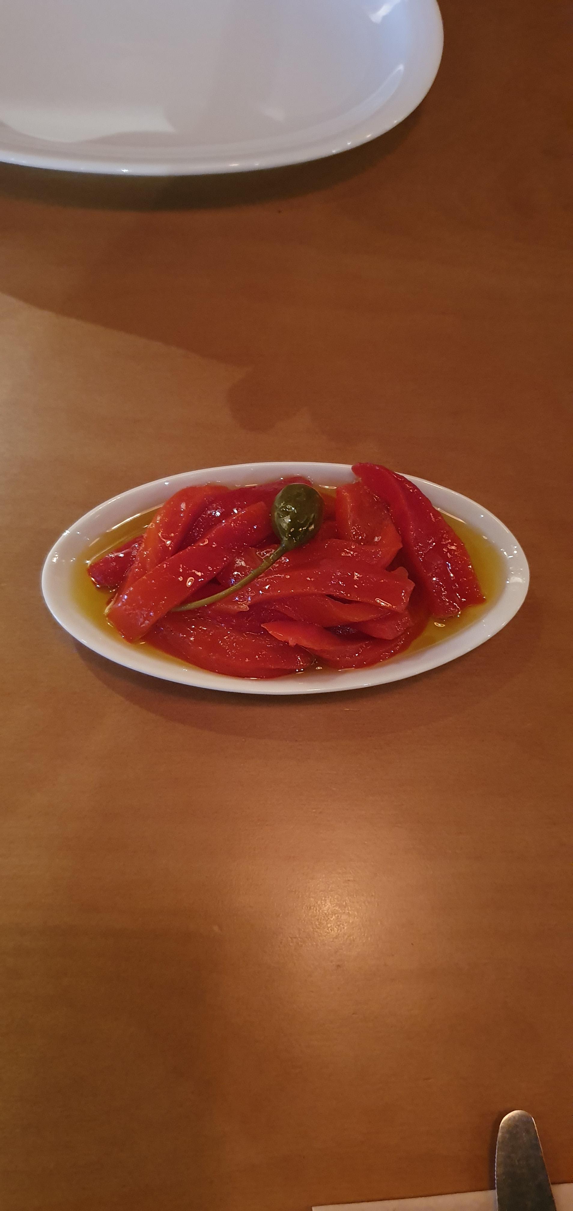 화이트비네거에 파프리카를 절인 것으로 식초의 시큼새콤한 맛과 파프리카의 아삭한 식감이 어우러지는 피클로 생각하면 된다.