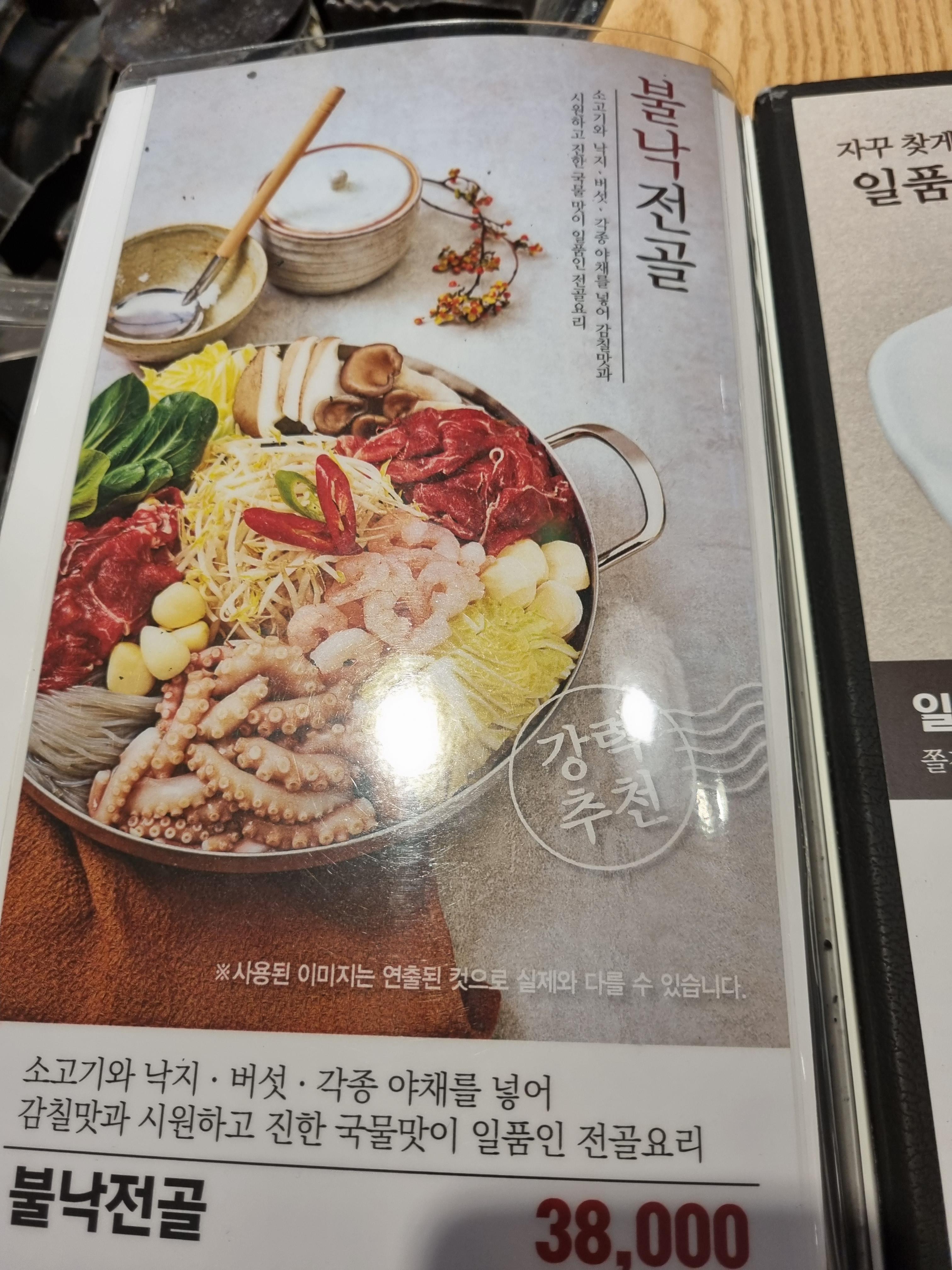 불낙전골은 소고기와 낙지를 넣은 것으로 소 38000원, 대 48000원이다.