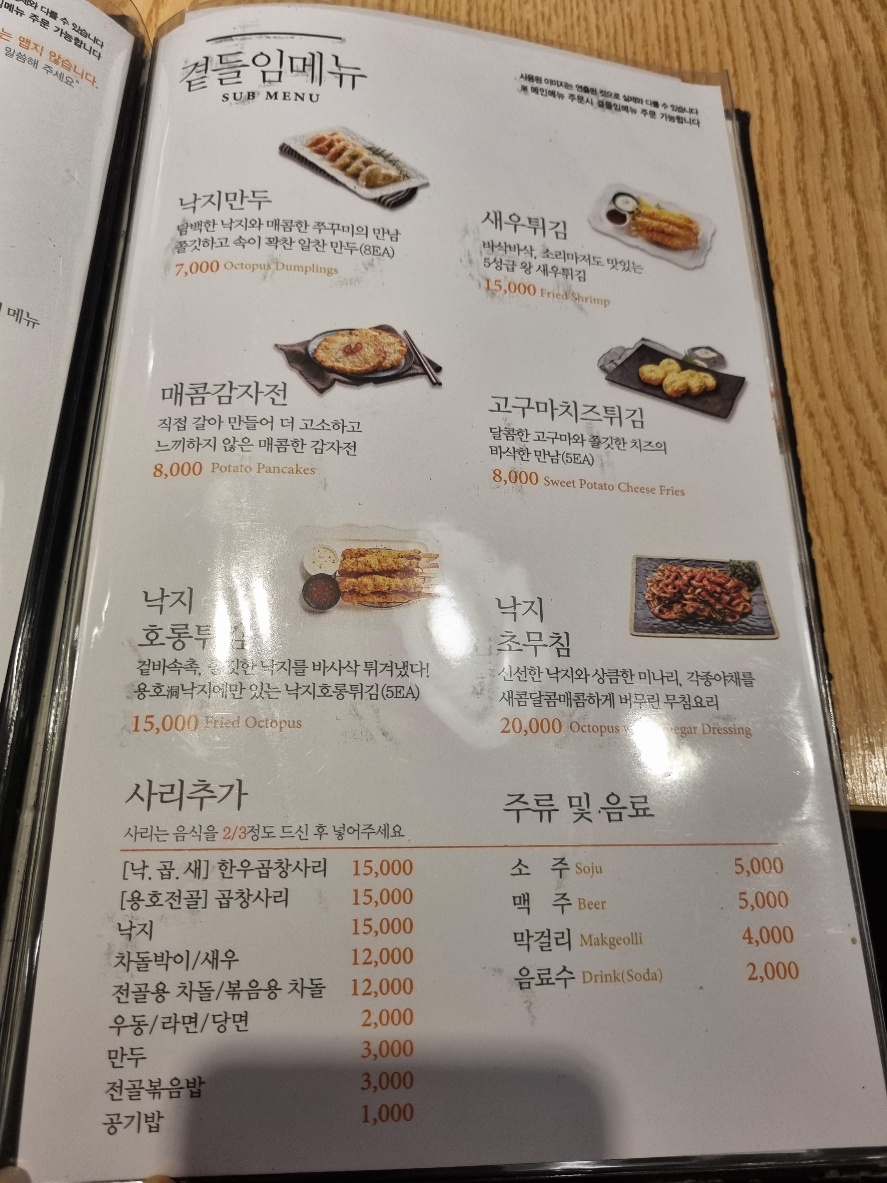용호낙지 메뉴