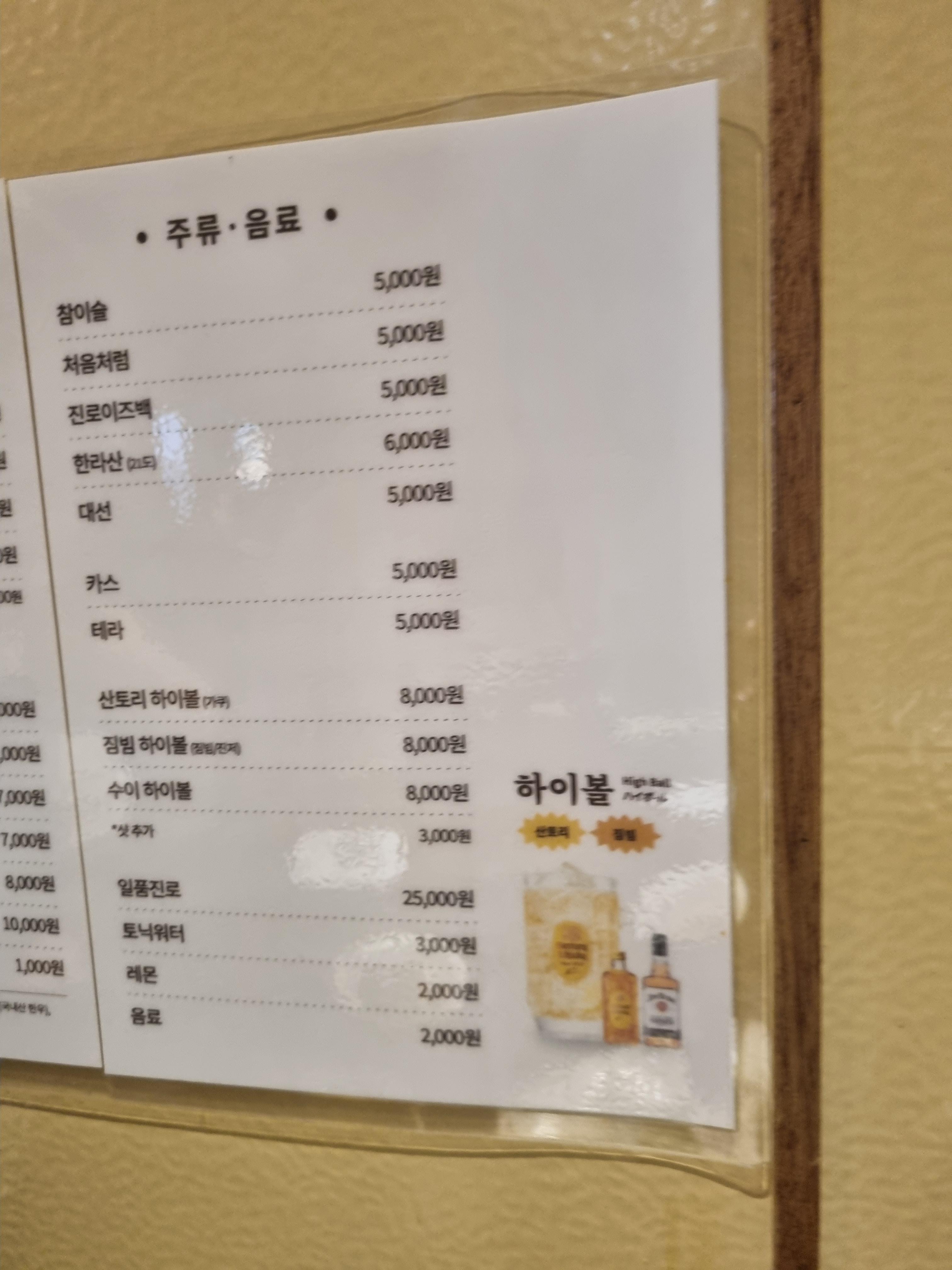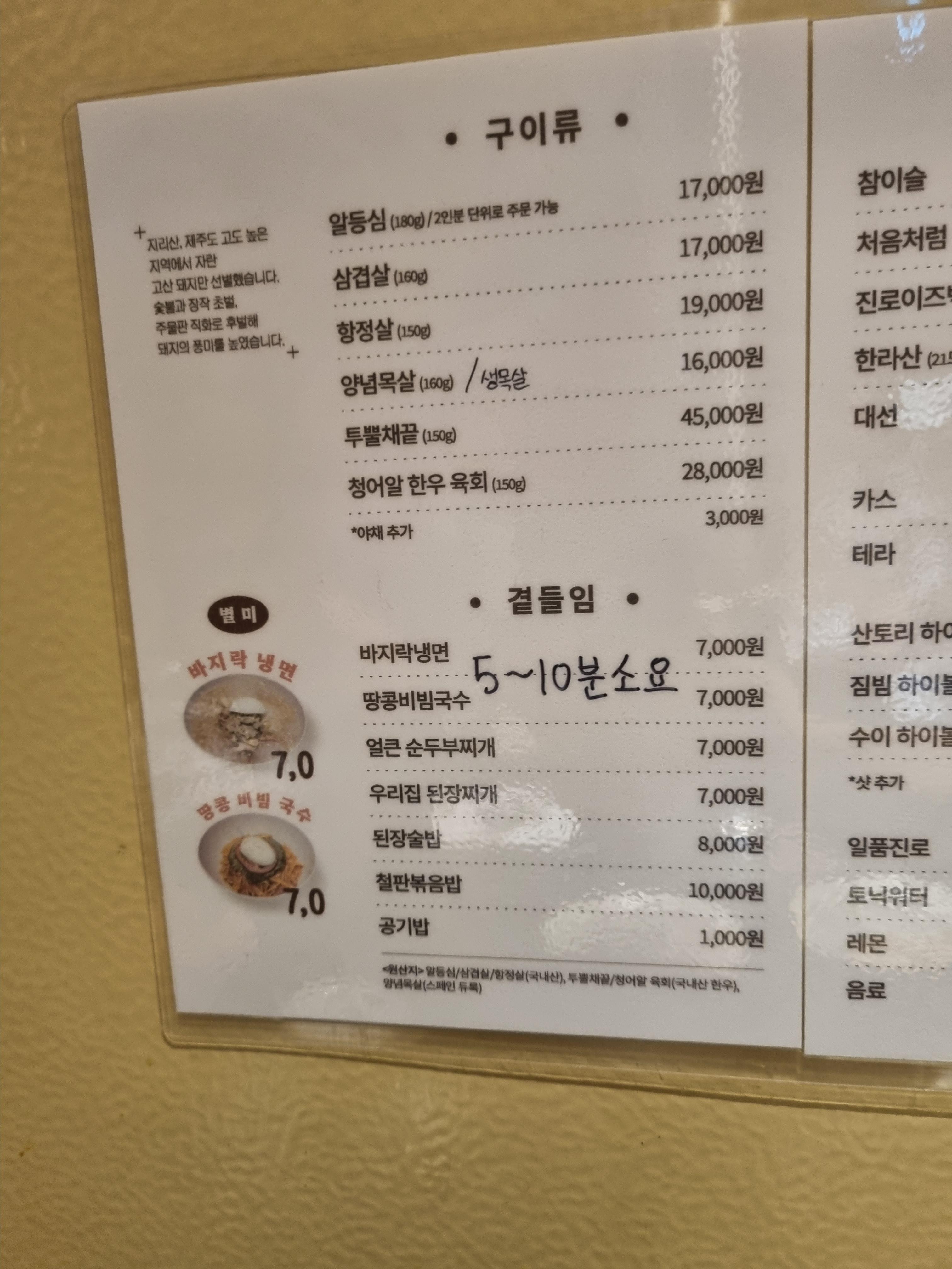 고기 이외에는 곁들임 메뉴가 있고, 술도 준비되어 있다.
