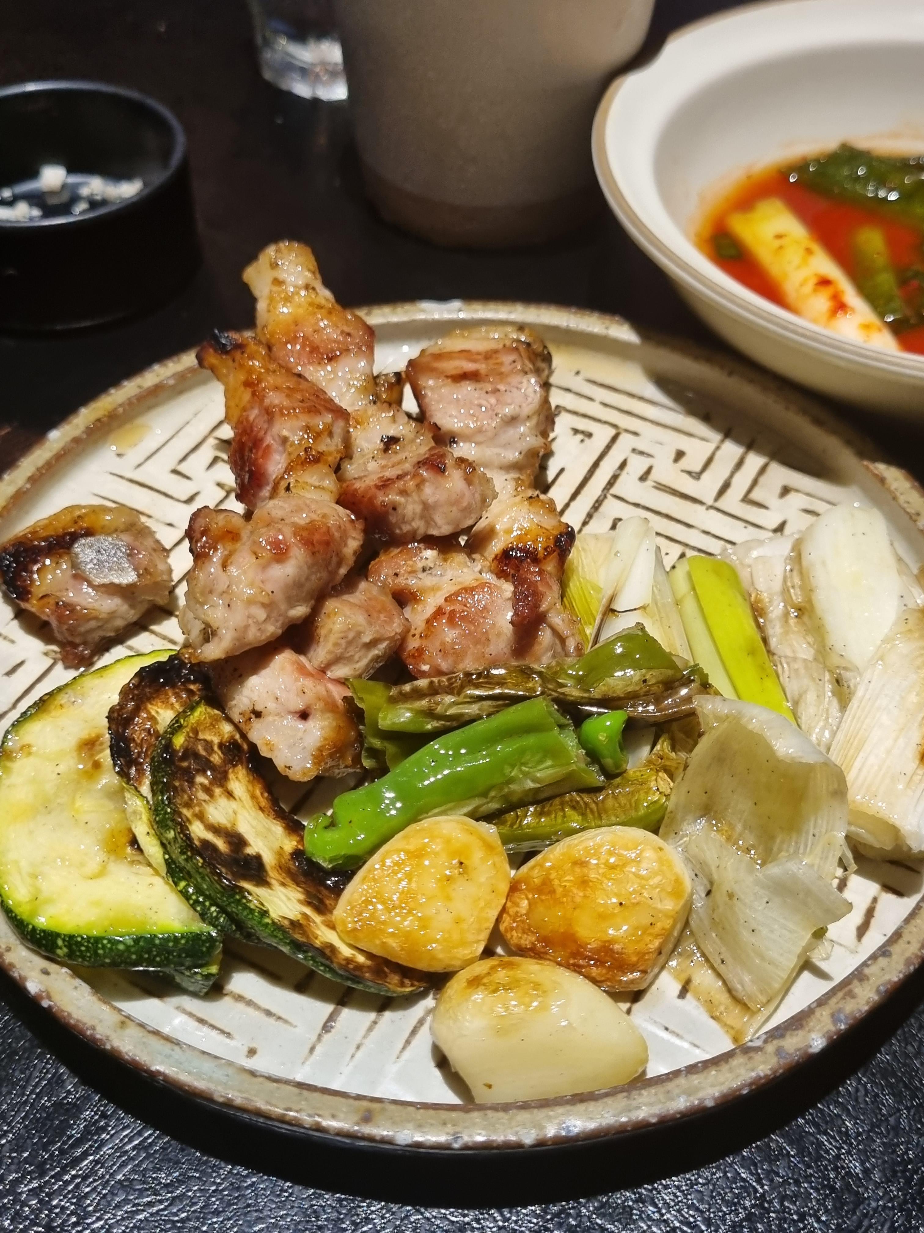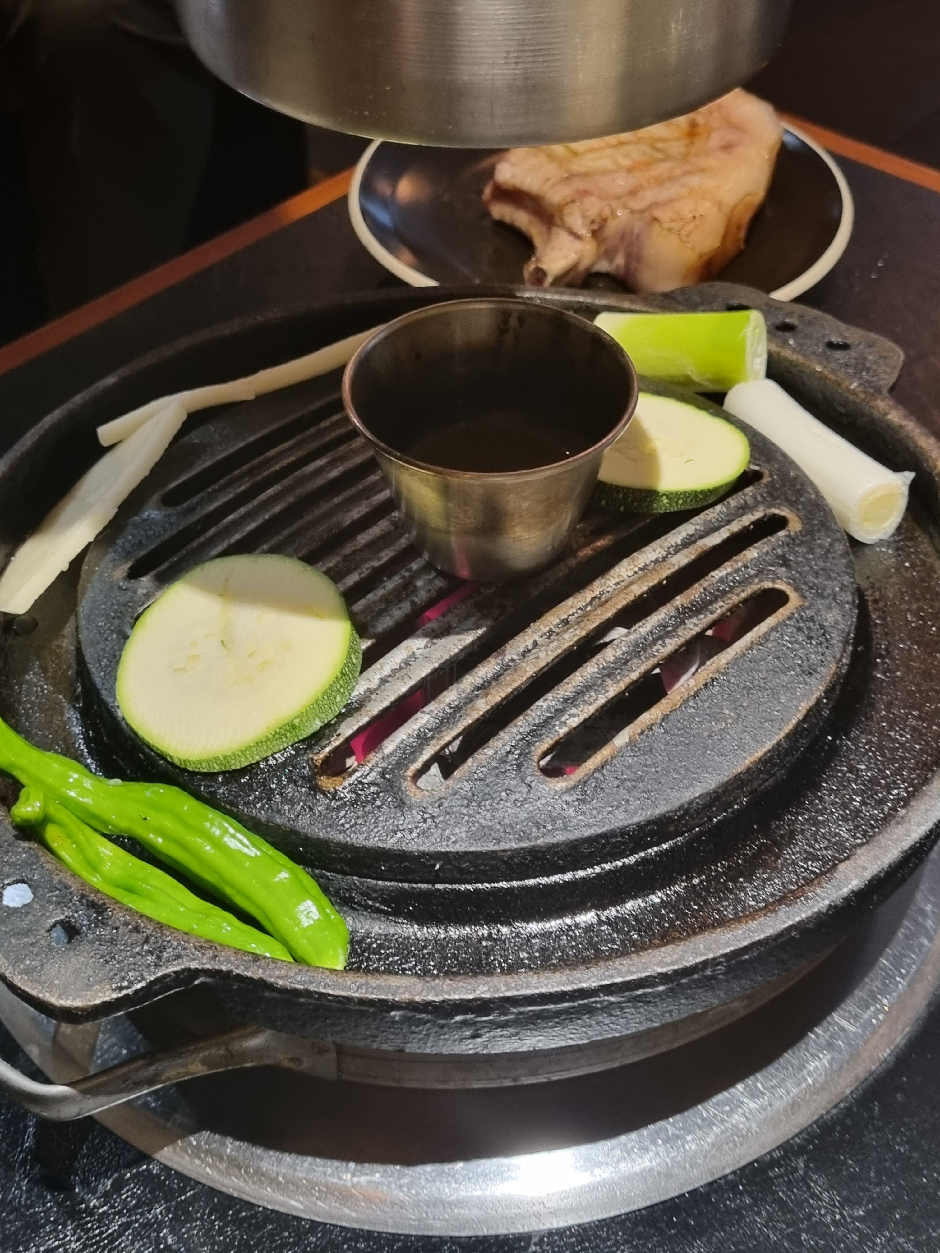 그리고 초반에 초벌이 되어 나오기 때문에 조금 더 빠르게 익고, 숯불과 장작에 초벌해서 고기에 베인 풍미가 좋다.