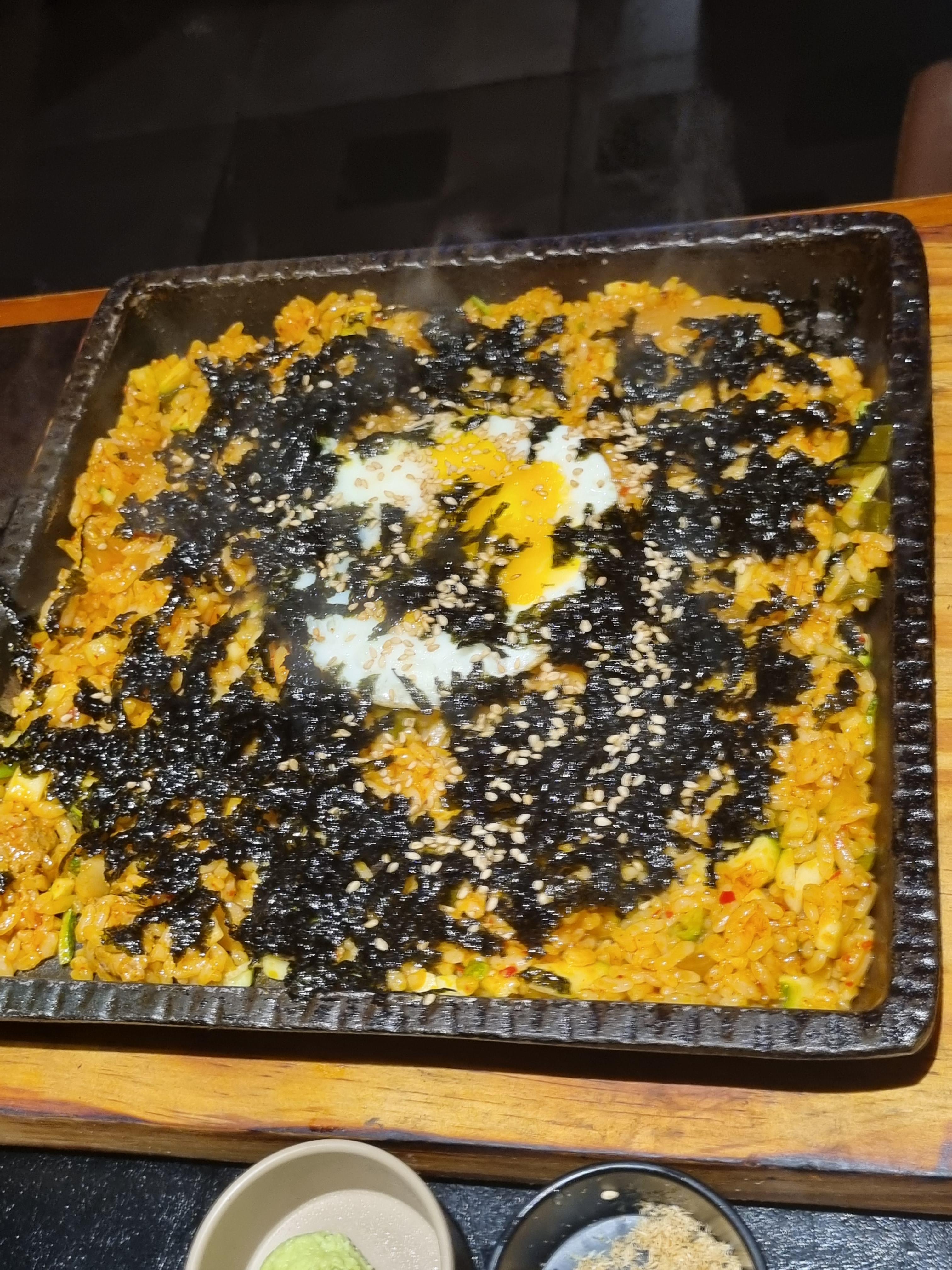 철판볶음밥. 이건 좀 짭짤했다. 김도 조미김이 더 짭짤.