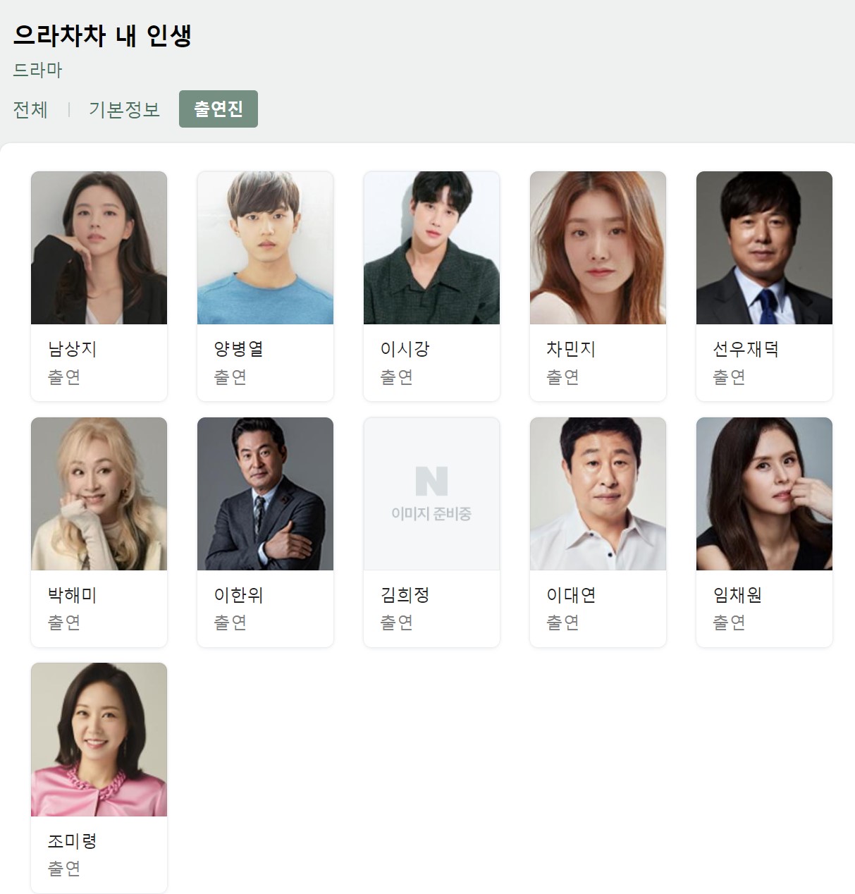 으라차차 내인생 드라마의 출연진 정보를 간단하게 살펴보겠다.
