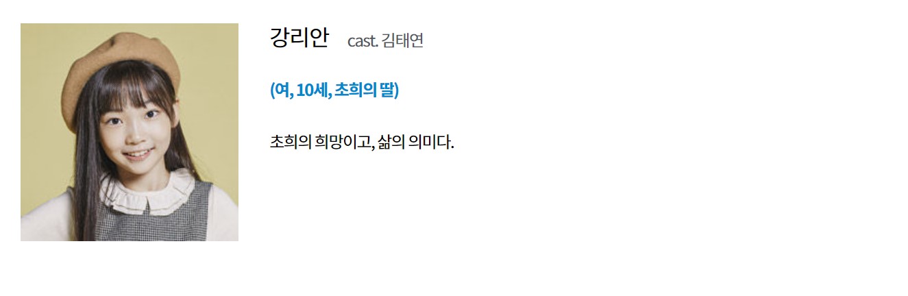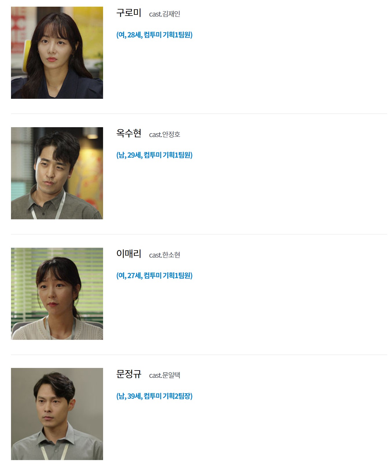 초희가 다니는 회사 컴투미 사람들과 슬아의 엄마 등등 다양한 사람들이 있지만 굵직한 인물들만 소개해보겠다.
