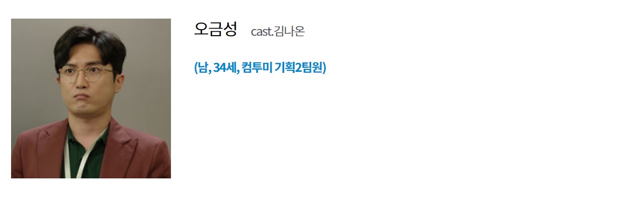 극의 주인공. 컴투미에 소속된 1팀 팀장이다. 곧 승진을 앞두고 있다.