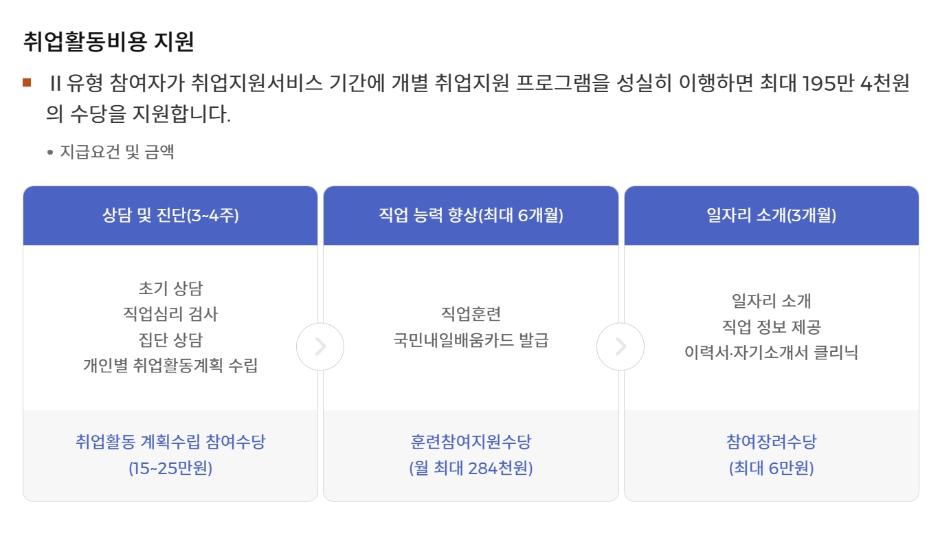 - 2유형은 취업활동비용+취업지원서비스 2가지를 제공받는다.
