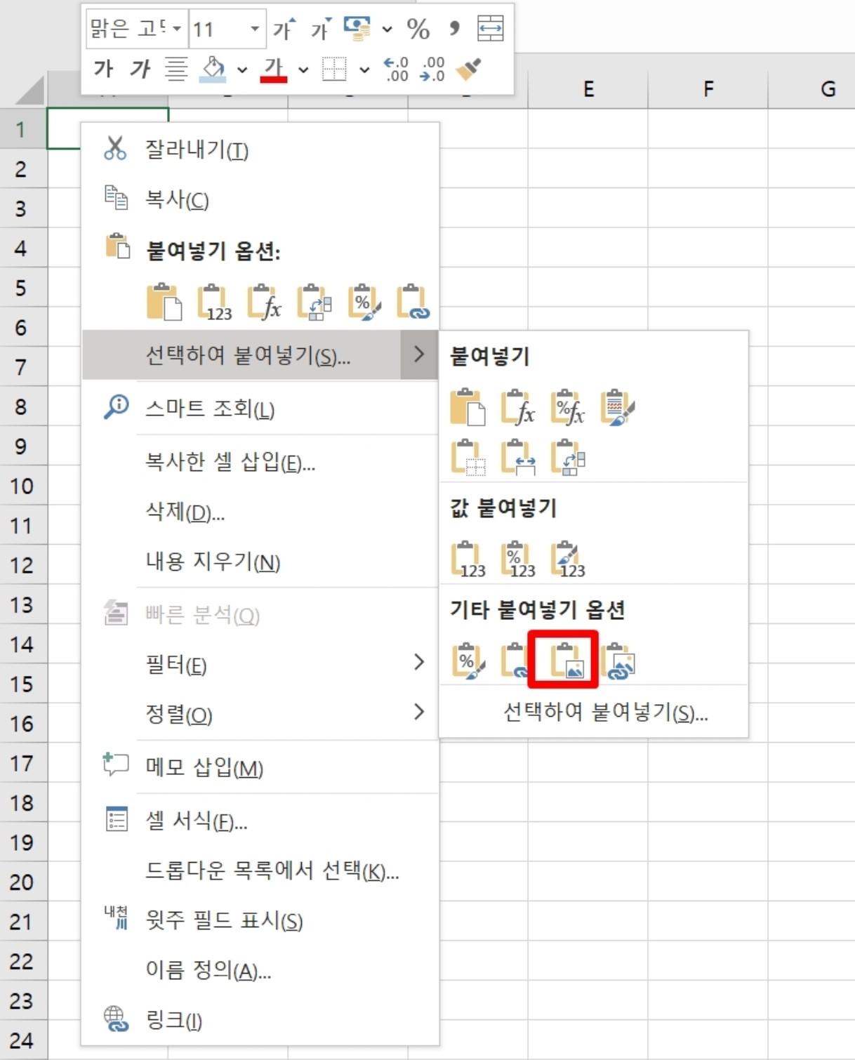 이번에는 선택하여 붙여넣기 기능 중, 3번째인 기타 붙여넣기 옵션에 대해서 알아보려고한다.