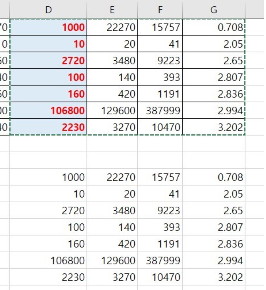 아래에는 테두리, 글자색빨강, 파랑배경 모두 사라지고 데이터값만 붙여넣기가 되었다.
