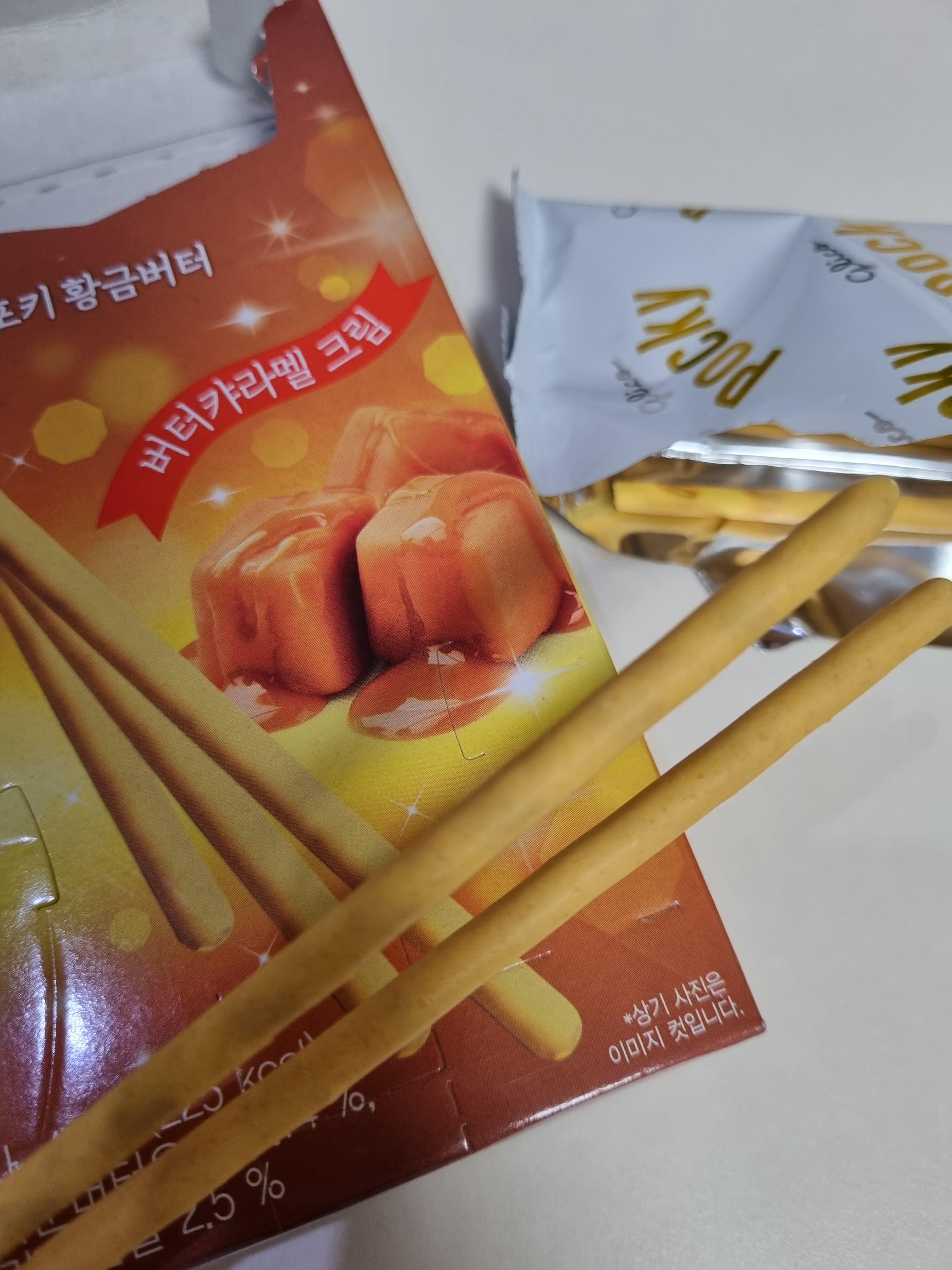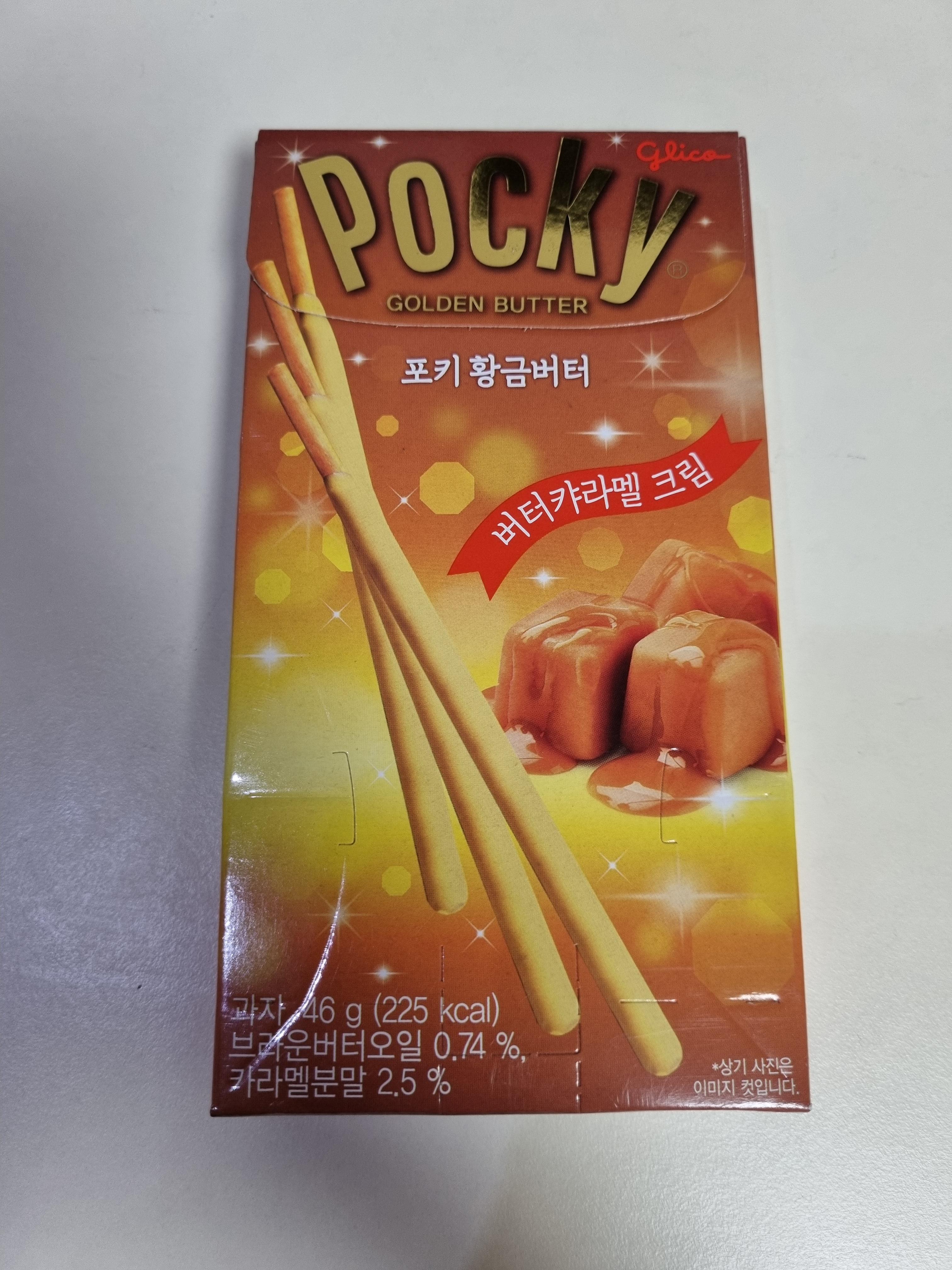 요즘 빼빼로에 꽂혔는데 빼빼로 사면서 발견한 포키 황금버터맛. 그냥 보는 것 만으로도 비쥬얼이 확 끌렸다. 뭔가 달달하게 맛있어 보여서 바로 주저없이 픽! 사오자마자 바로 먹어봤다.