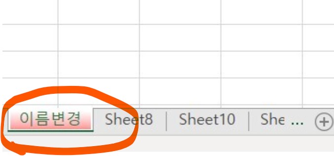 시트이름 변경하는 방법2.