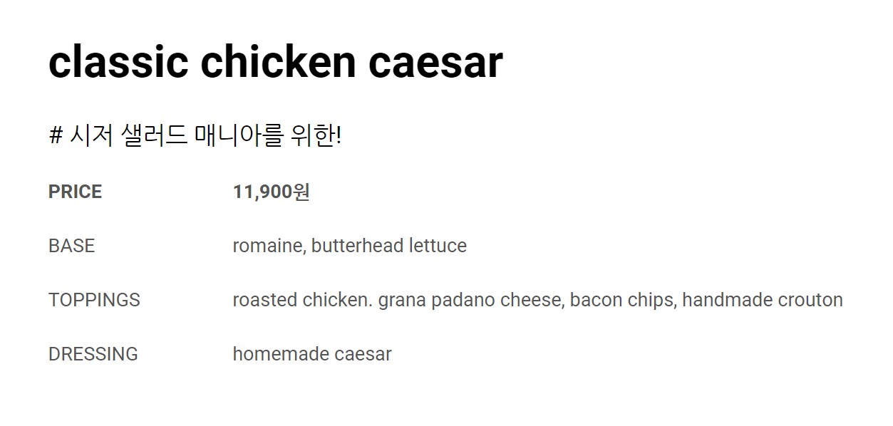 클래식 치킨 시저 classic chicken ceaser 11900원