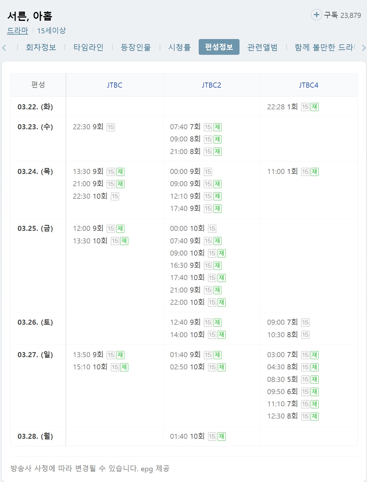 얼마 안남았지만 그만큼 기간이 짧아 아쉬운 분들을 위해 재방송 시간을 소개하려고 한다.