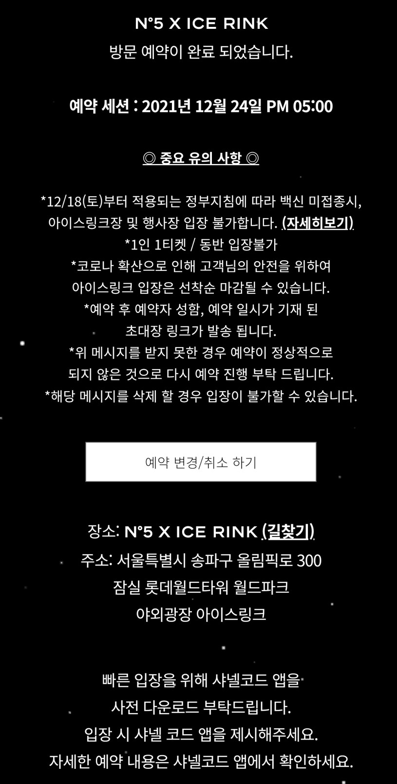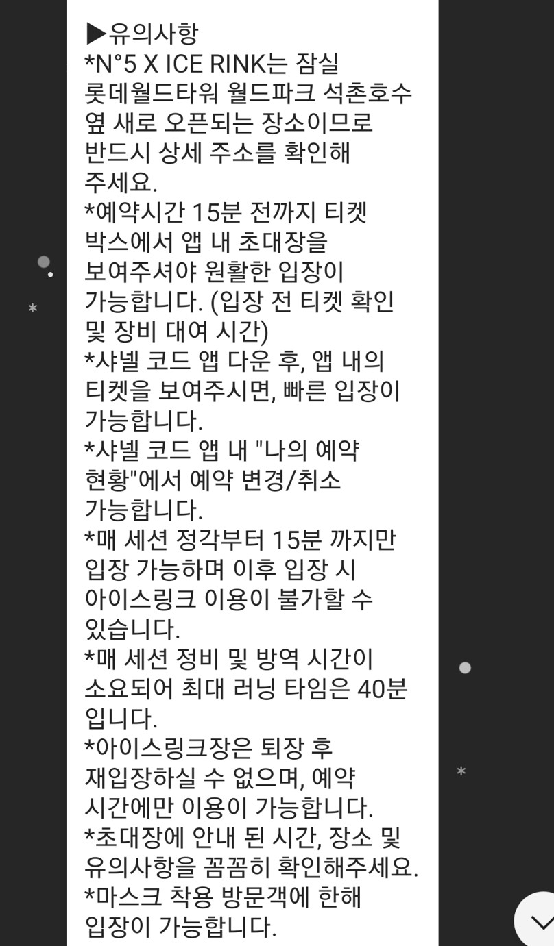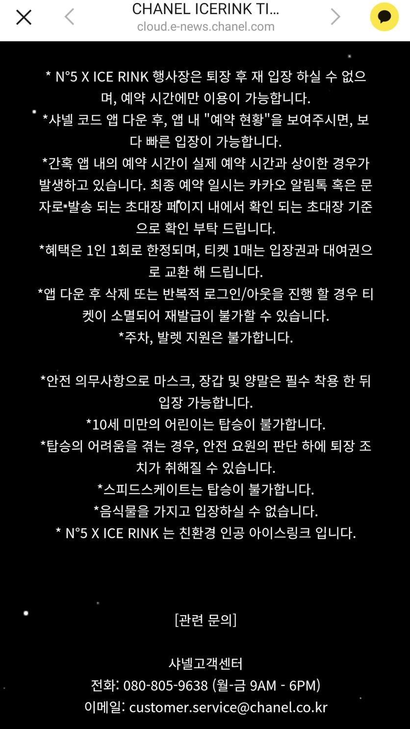 미리 예약을 해두어서 초대장을 받은 상태였다. 샤넬 스케이트장을 방문하려면 2가지 방법이 있다.
