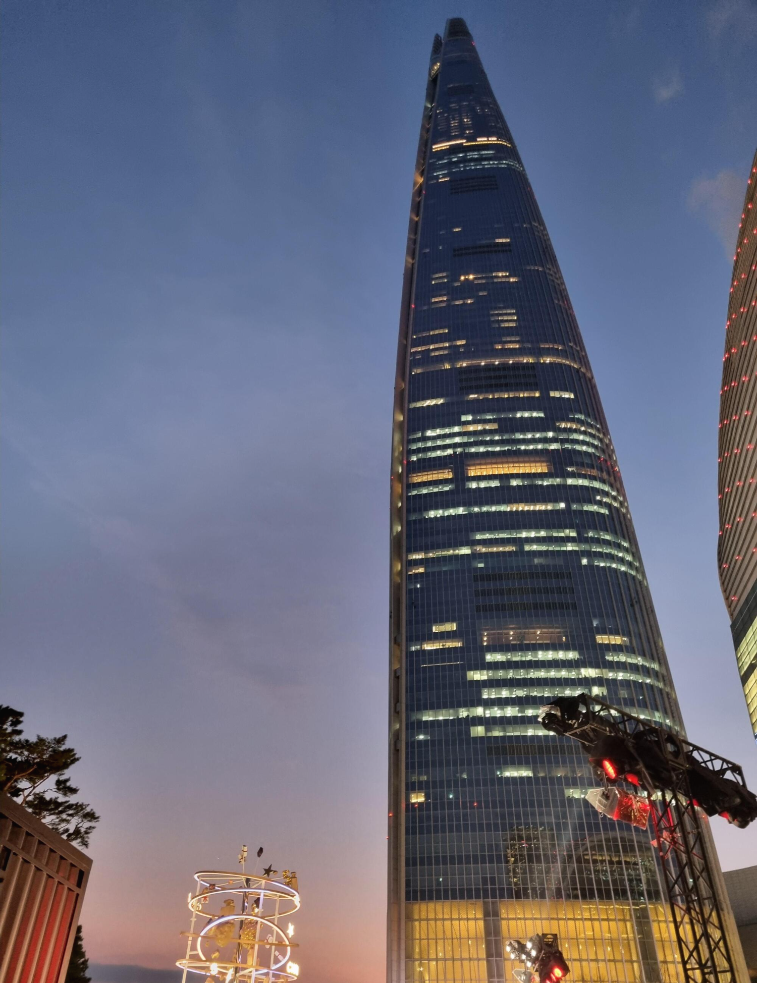 소피텔쪽의 입구에서 나오면 롯데타워와 샤넬 아이스링크 스케이트장이 한눈에 보인다.
