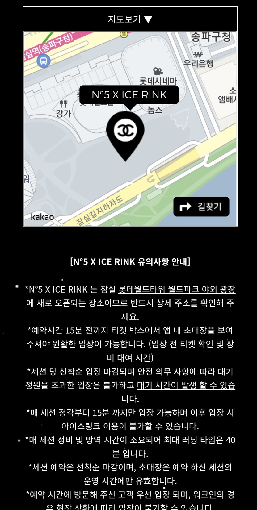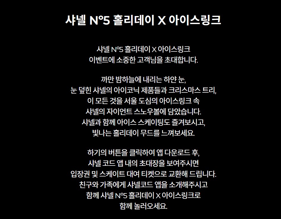 미리 예약을 해두어서 초대장을 받은 상태였다. 샤넬 스케이트장을 방문하려면 2가지 방법이 있다.