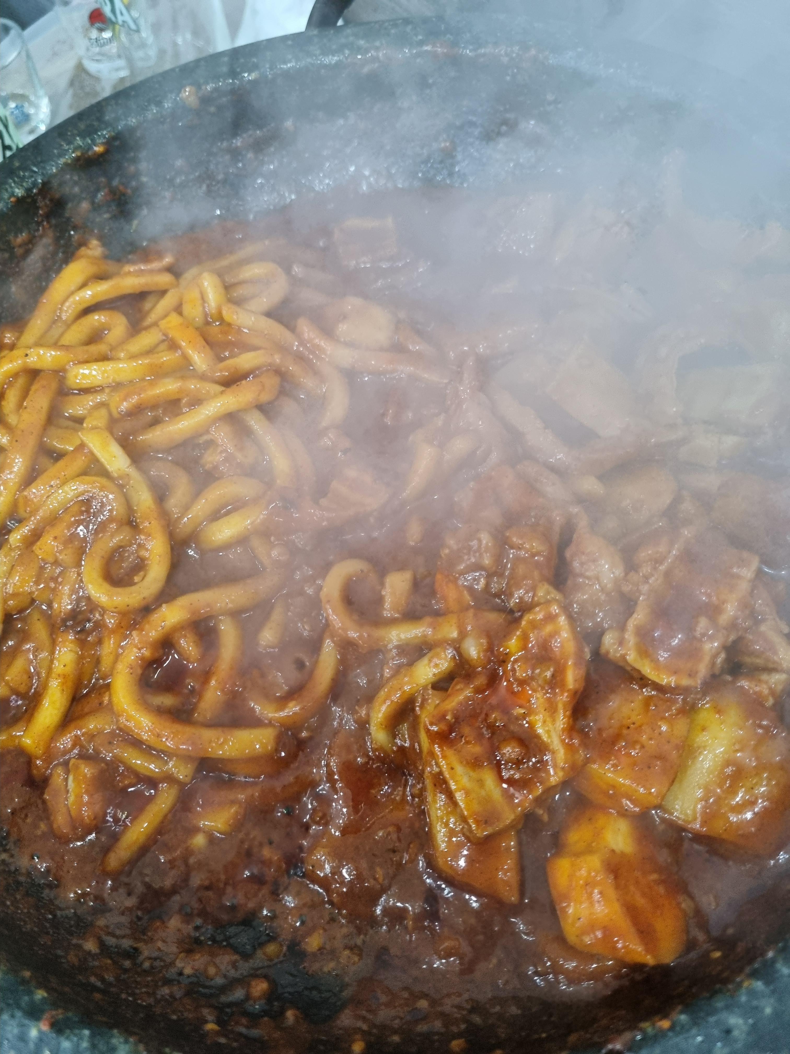 저랬던 양곱창이 어느새 볶아져서 이렇게 변신을 하니, 그때 우동사리를 넣어주신다.