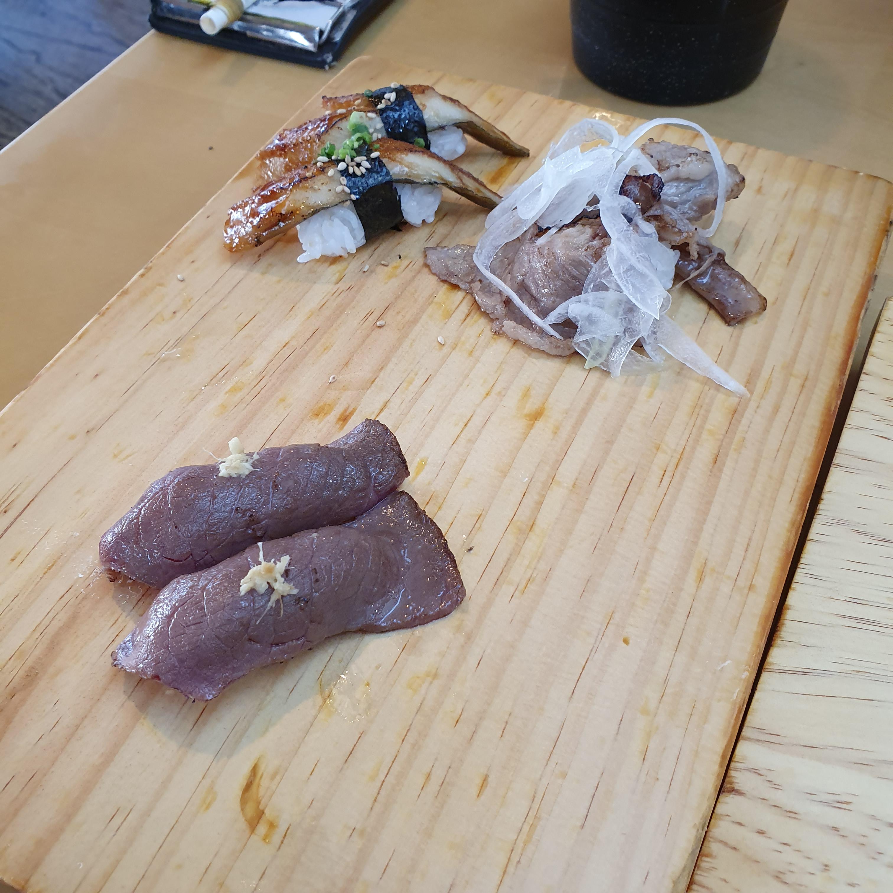 세번째 판은 소고기초밥과 장어다. 사실 생선초밥을 더 좋아해서 개인적으로는 소고기초밥이 나오는게 조금 아쉬운 구성으로 생각된다. 그렇지만 대부분의 사람들에게 인기가 많을 것 같다.
