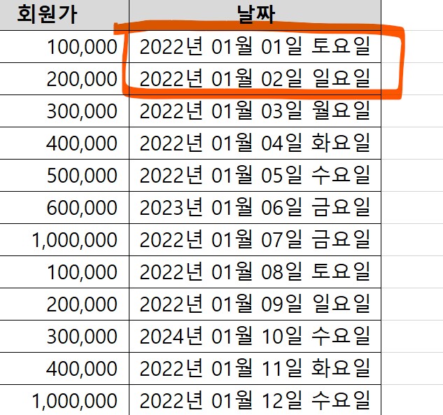 일반적으로 날짜와 요일을 한번에 적어두고 채우기를 사용하면