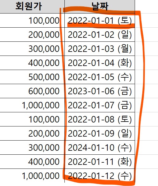 위의 예시에서는 그냥 연도, 월, 일만 나와 있었다.