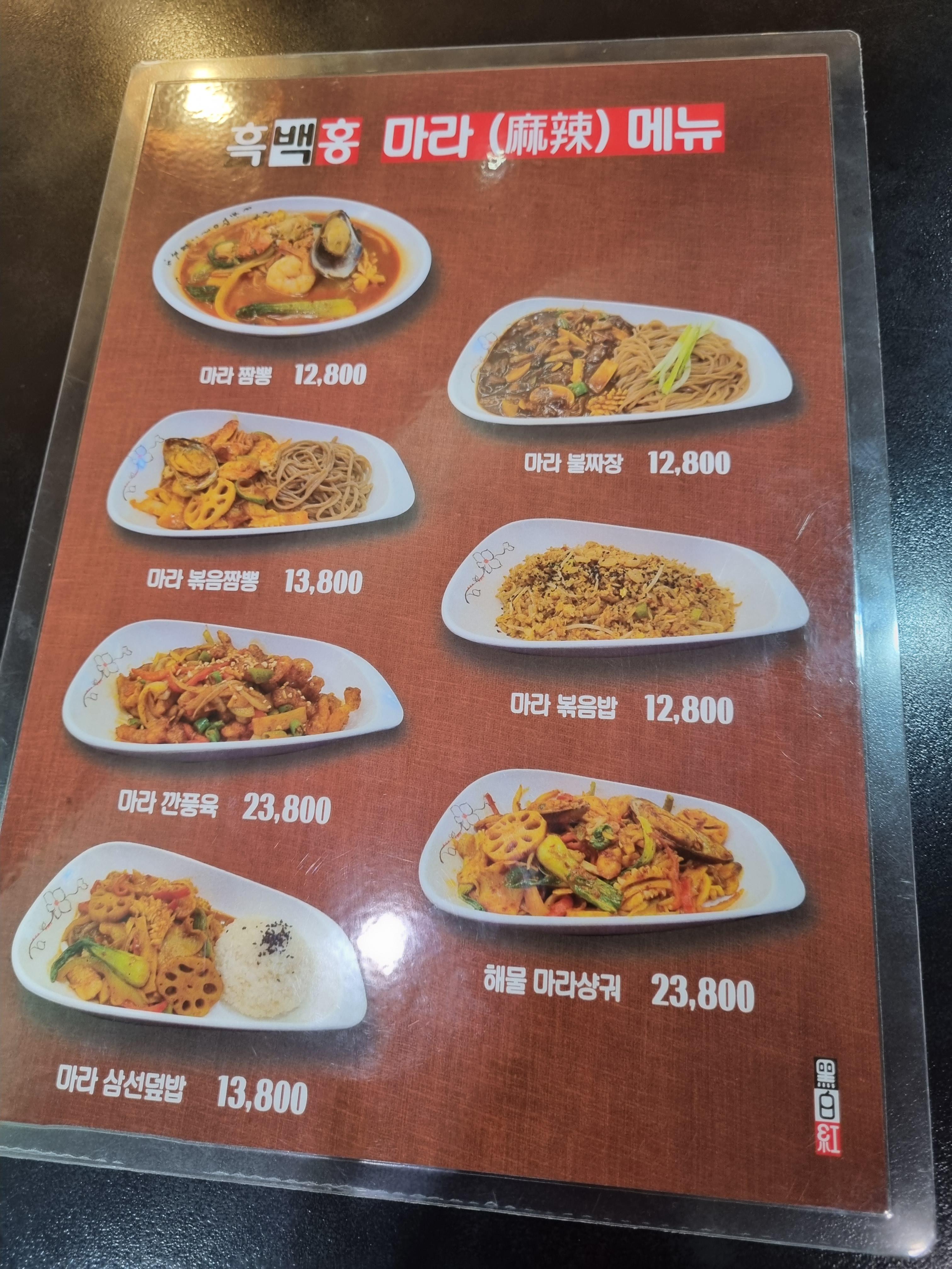 흑백홍 메뉴