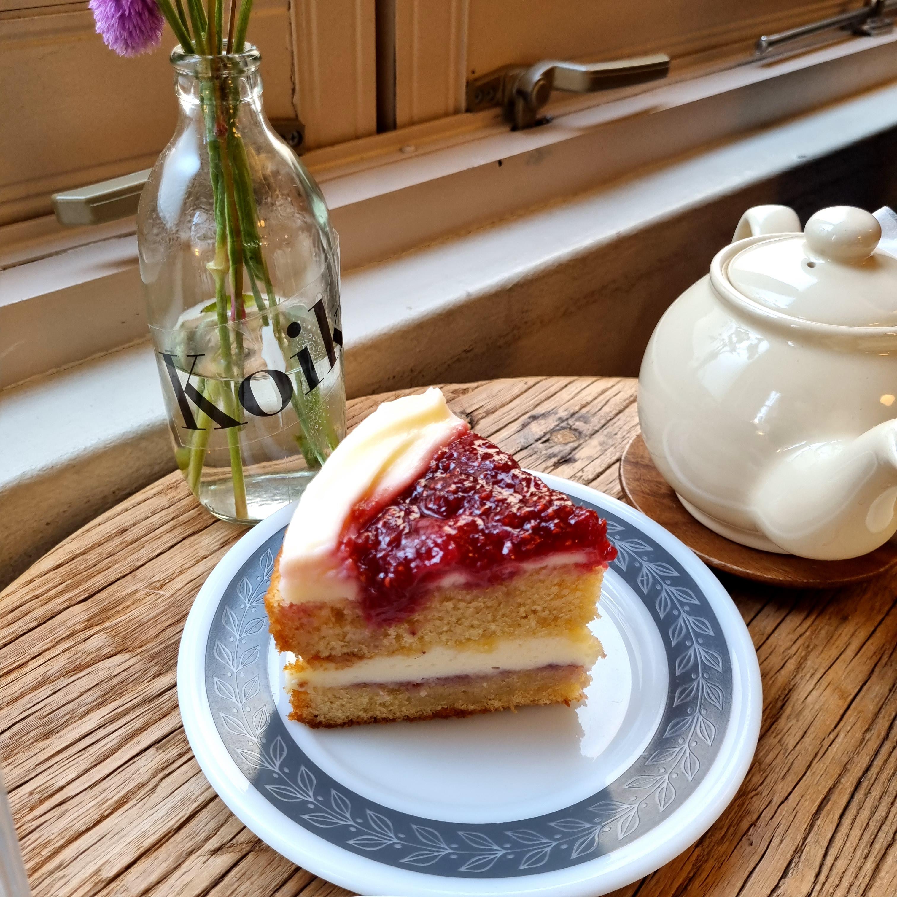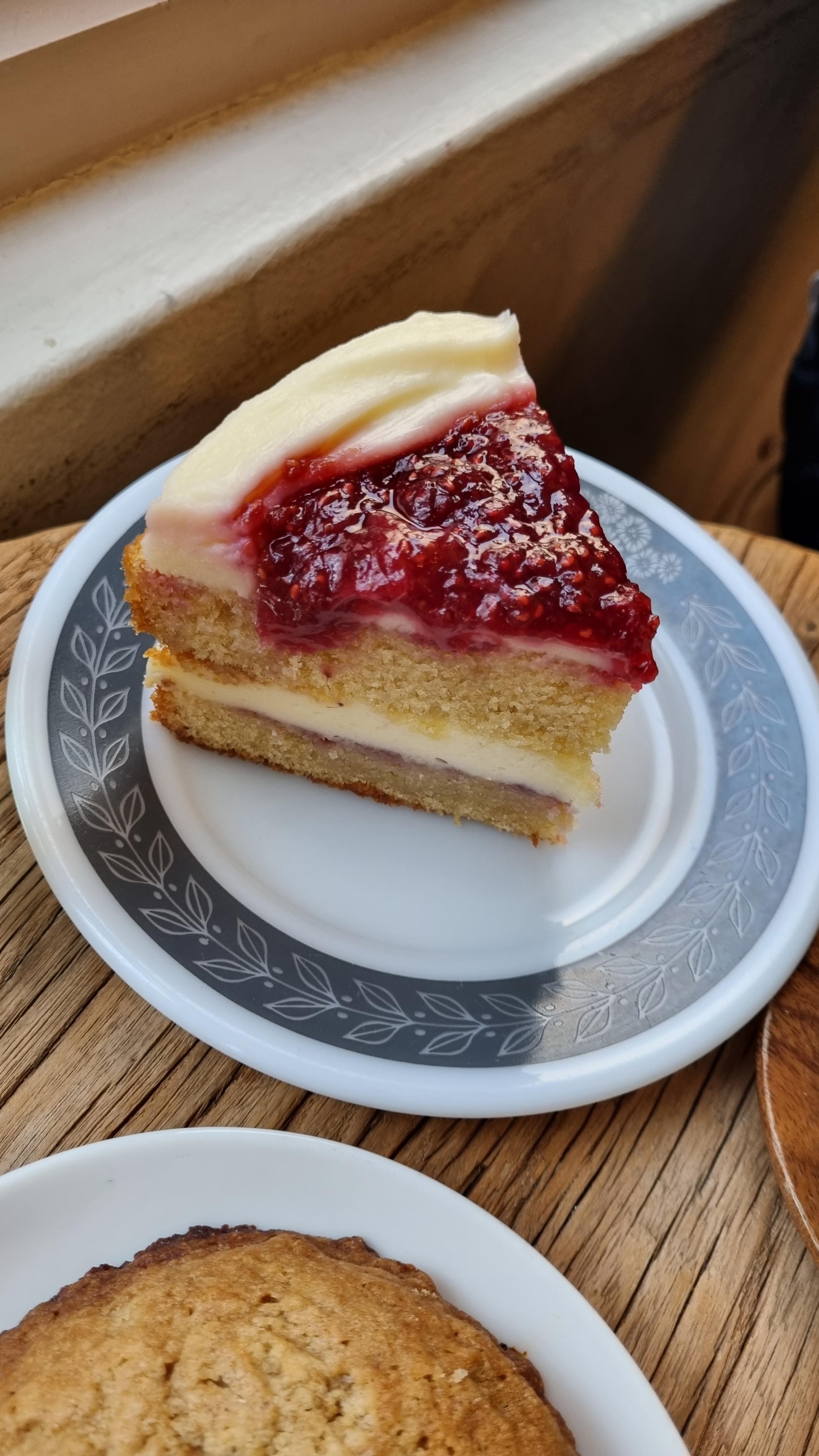 조각케이크의 경우에는 시트가 두껍게 2단으로 되어 있다. 거의 빅토리아케이크 스타일인데, 홀케이크로 주문시 3단정도로 얇게 나누어서 중간중간 쨈이 아주 얇게 발려있고, 크림도 함께 얇게 발려잇어서 밸런스가 더 조화로웠었다!!!!!