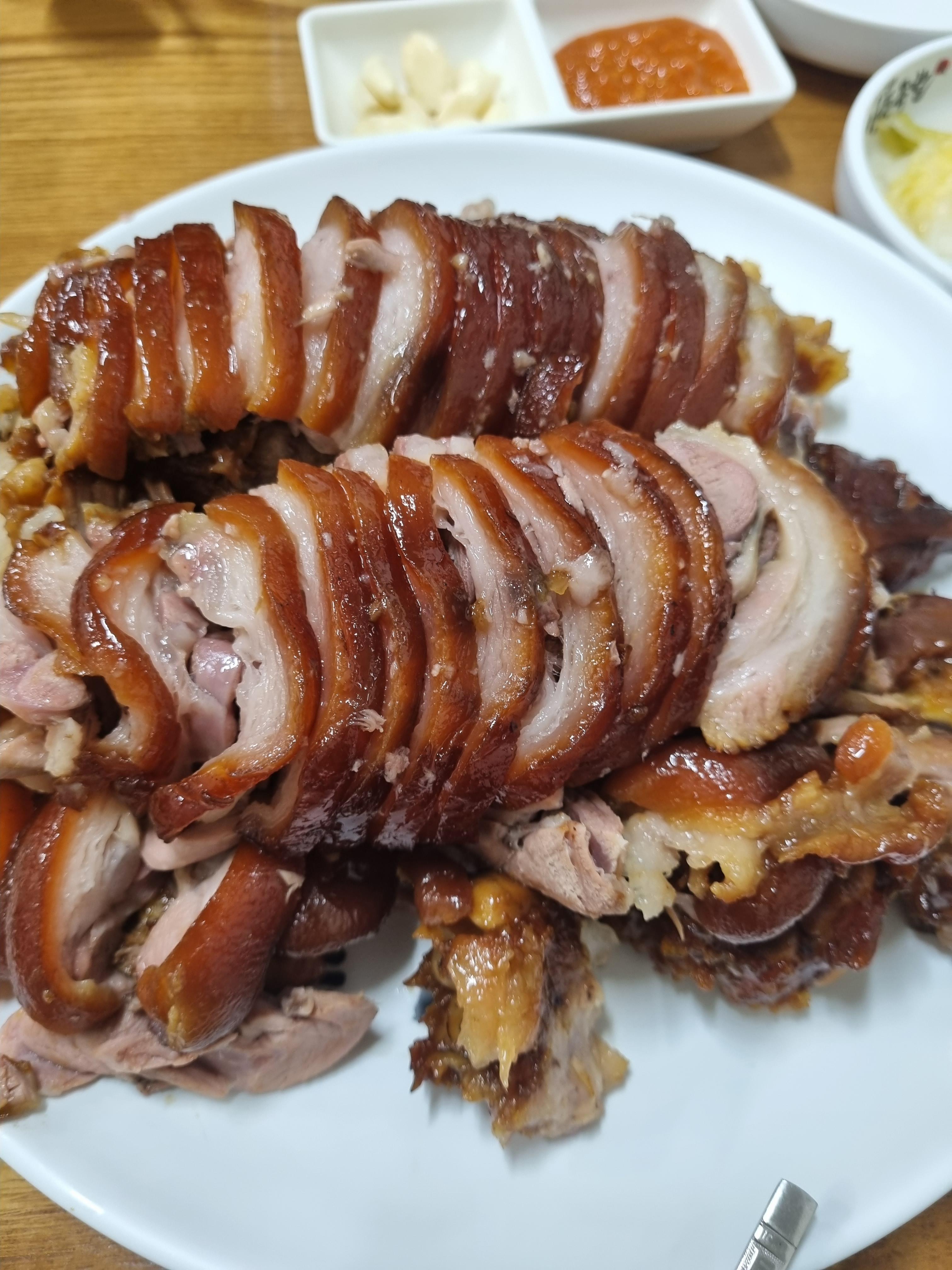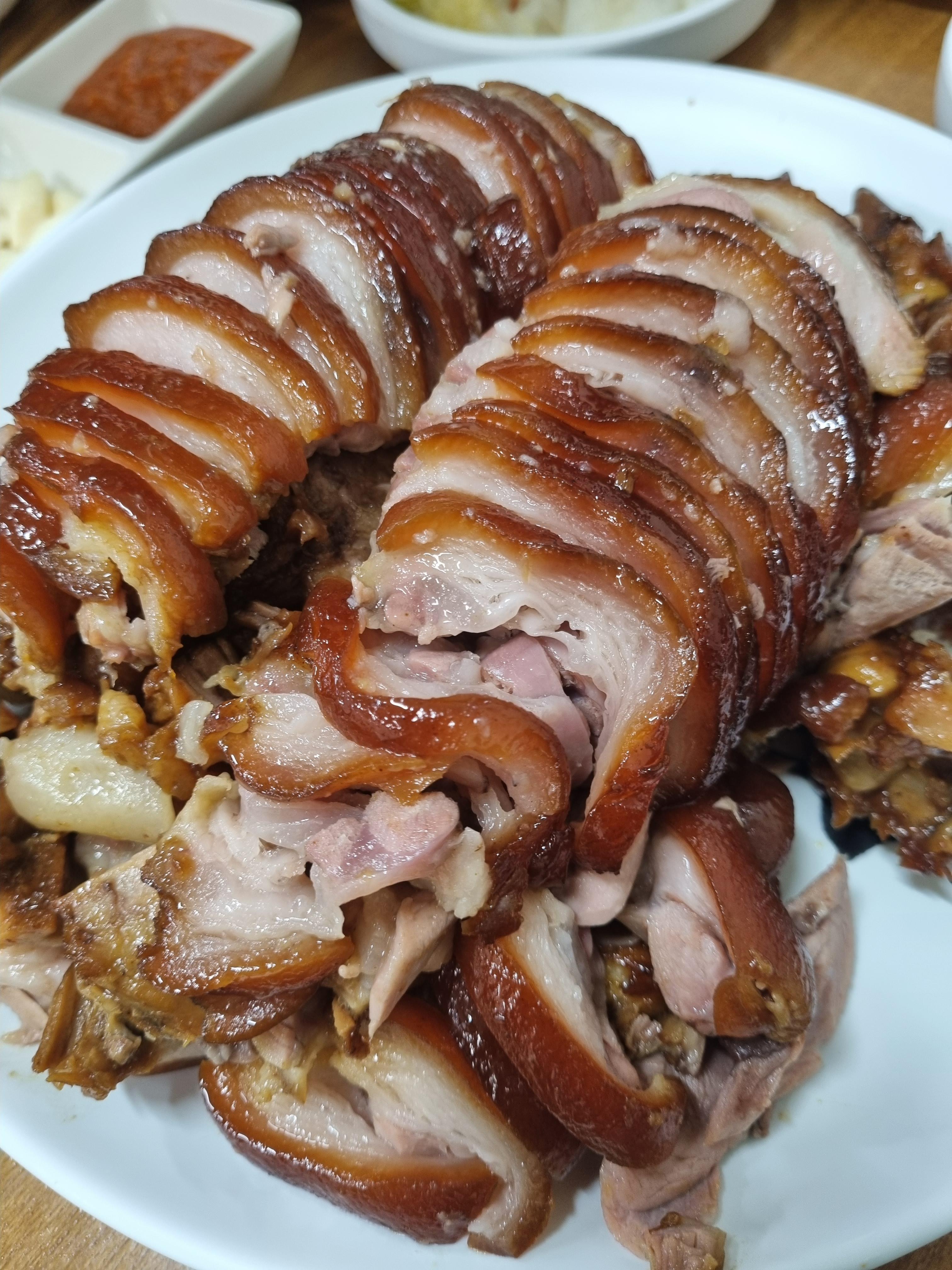 윤기가 자르르 흐르는 족발에 야들하면서도 약간 꼬들한 껍데기의 식감이 느껴졌다. 한없이 부드럽기만 한 족발은 아니었다. 약간 쫀득한 맛이 살아 있는 족발이다.