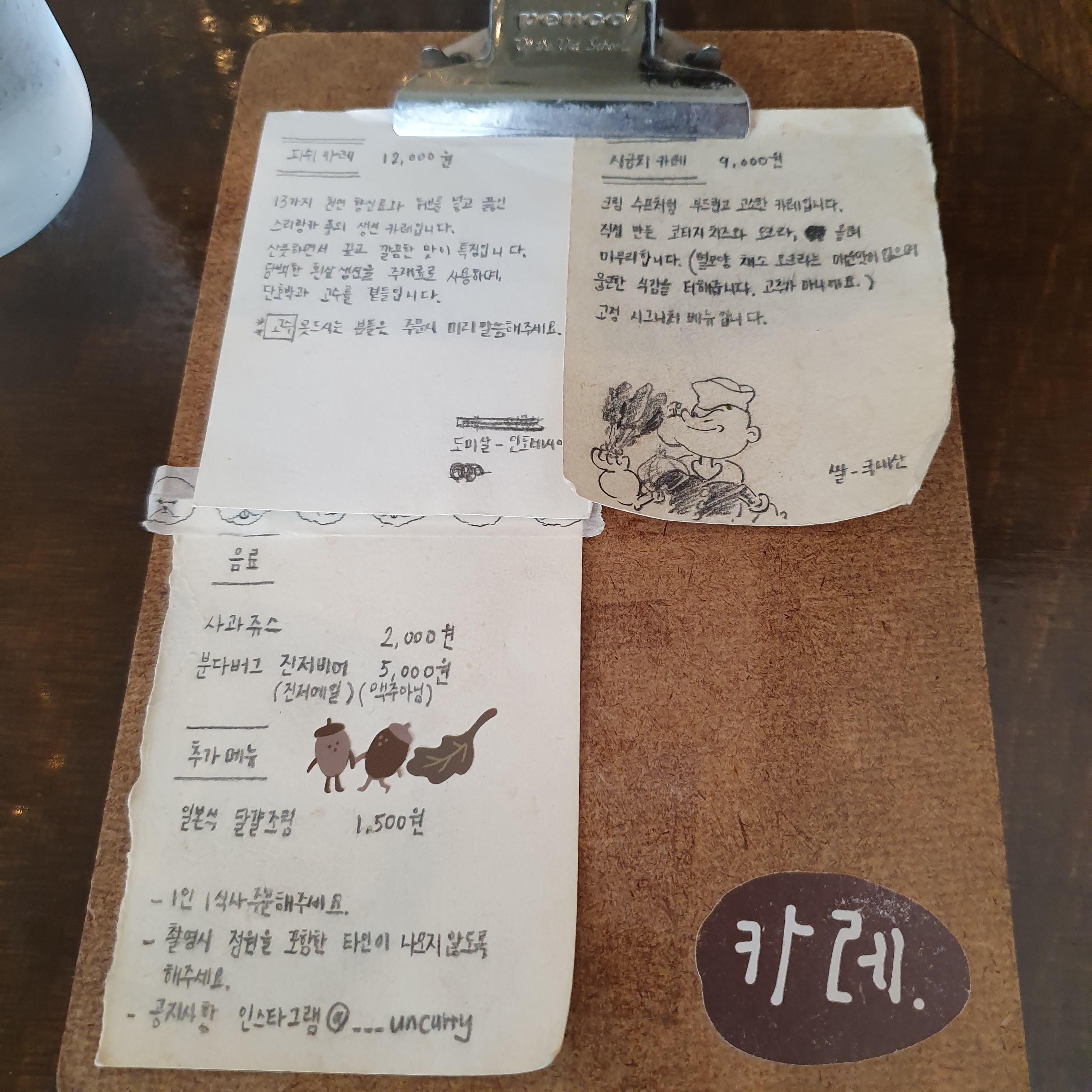 시금치카레 9000원, 피쉬카레 12000원 정도로 구성되어있다.
