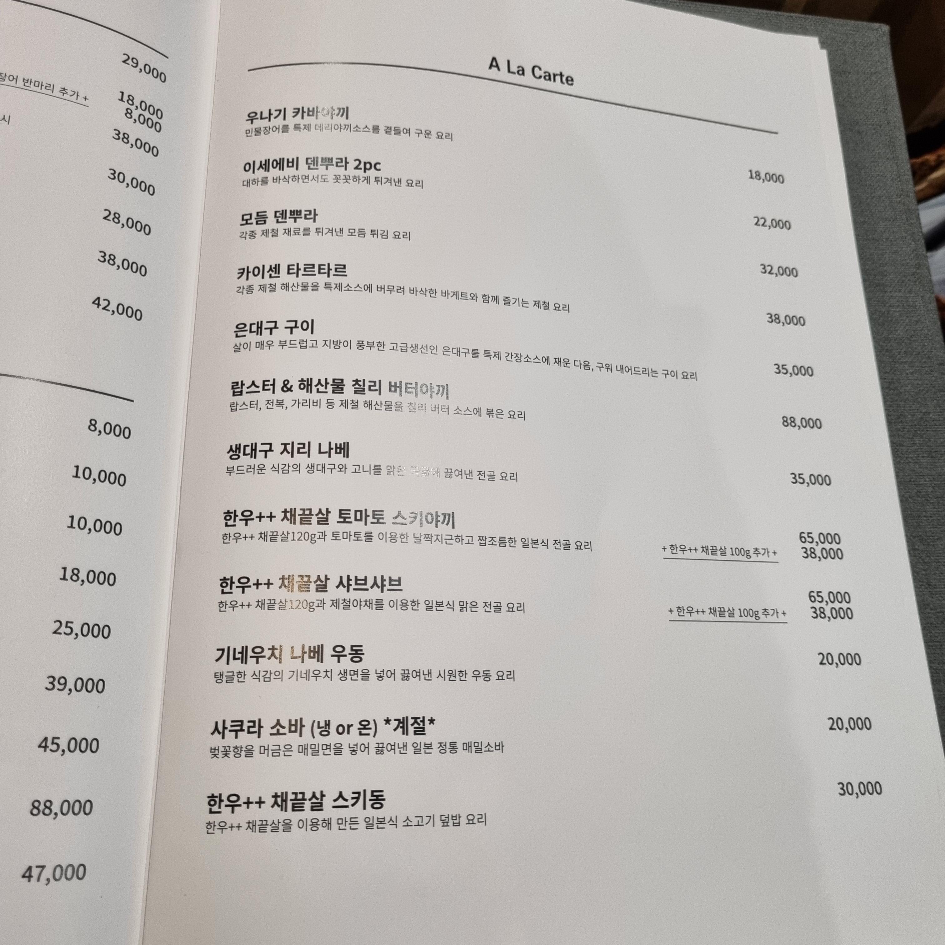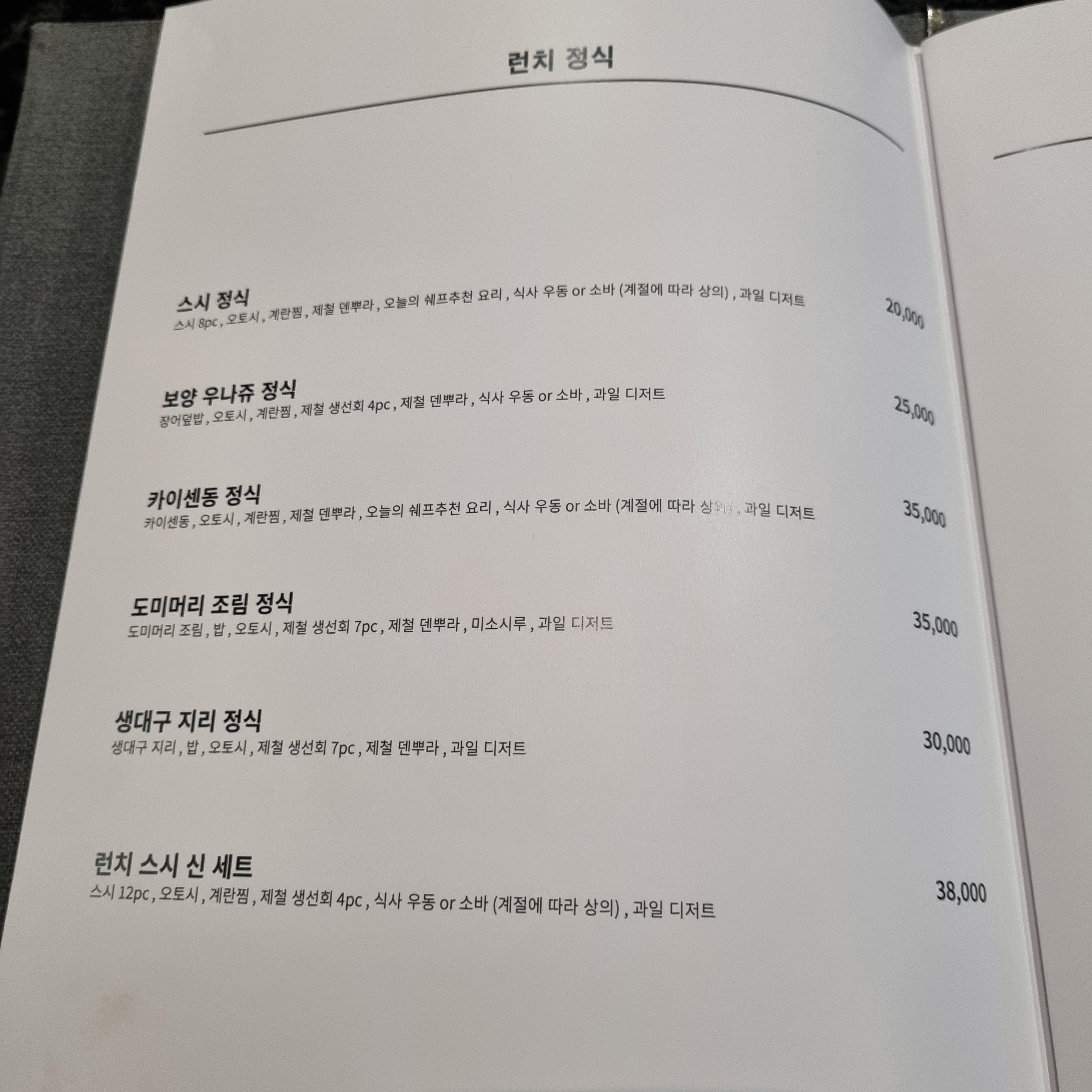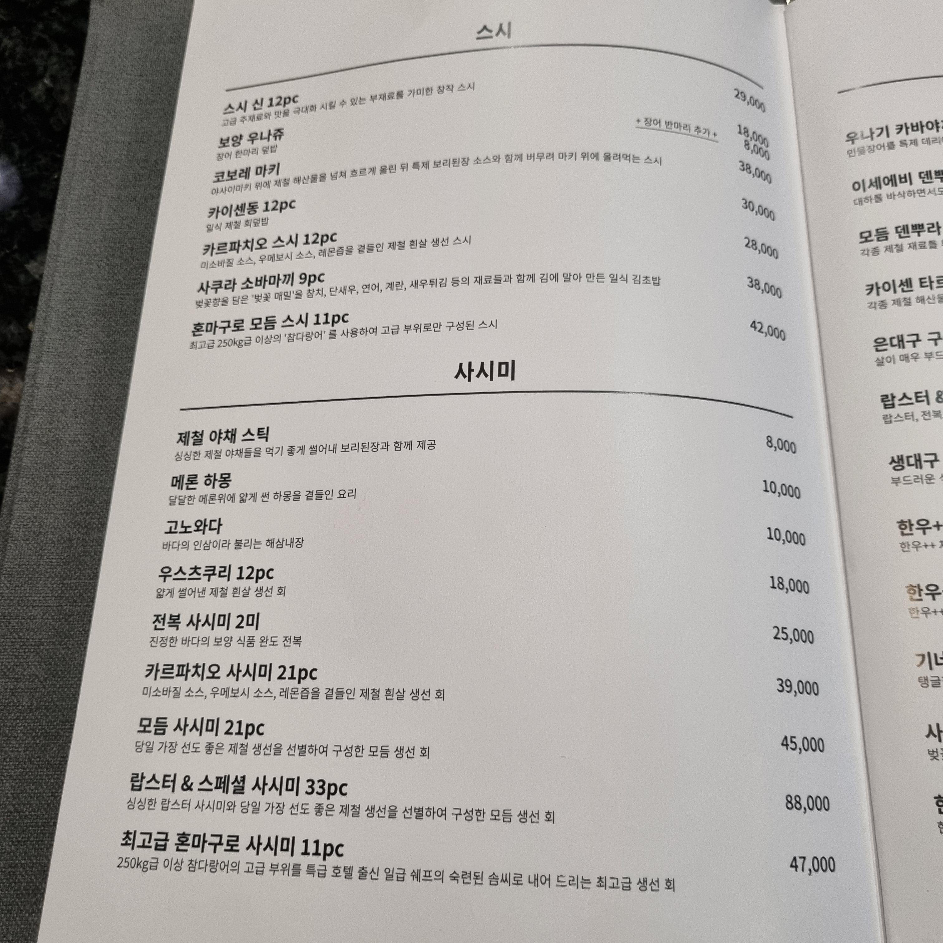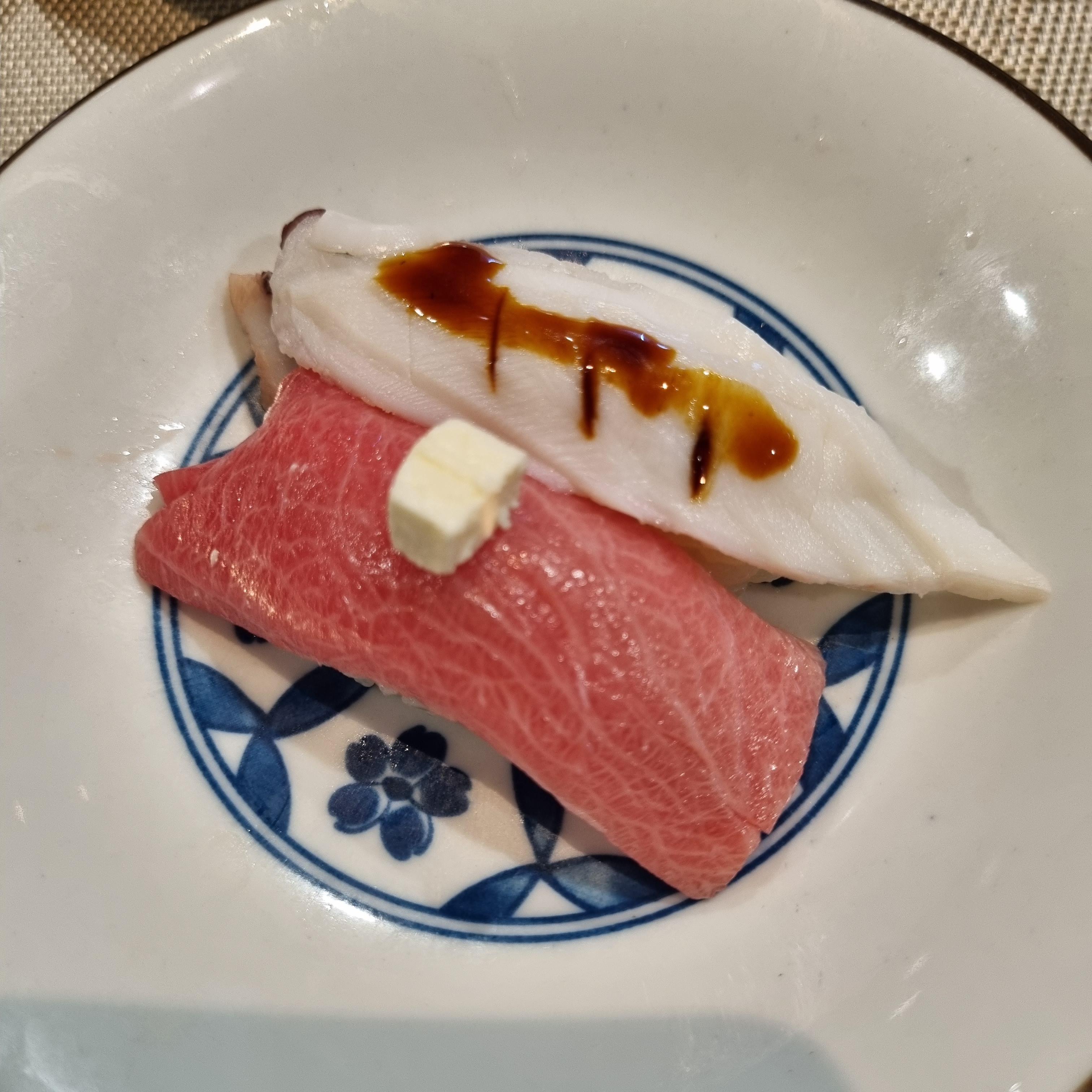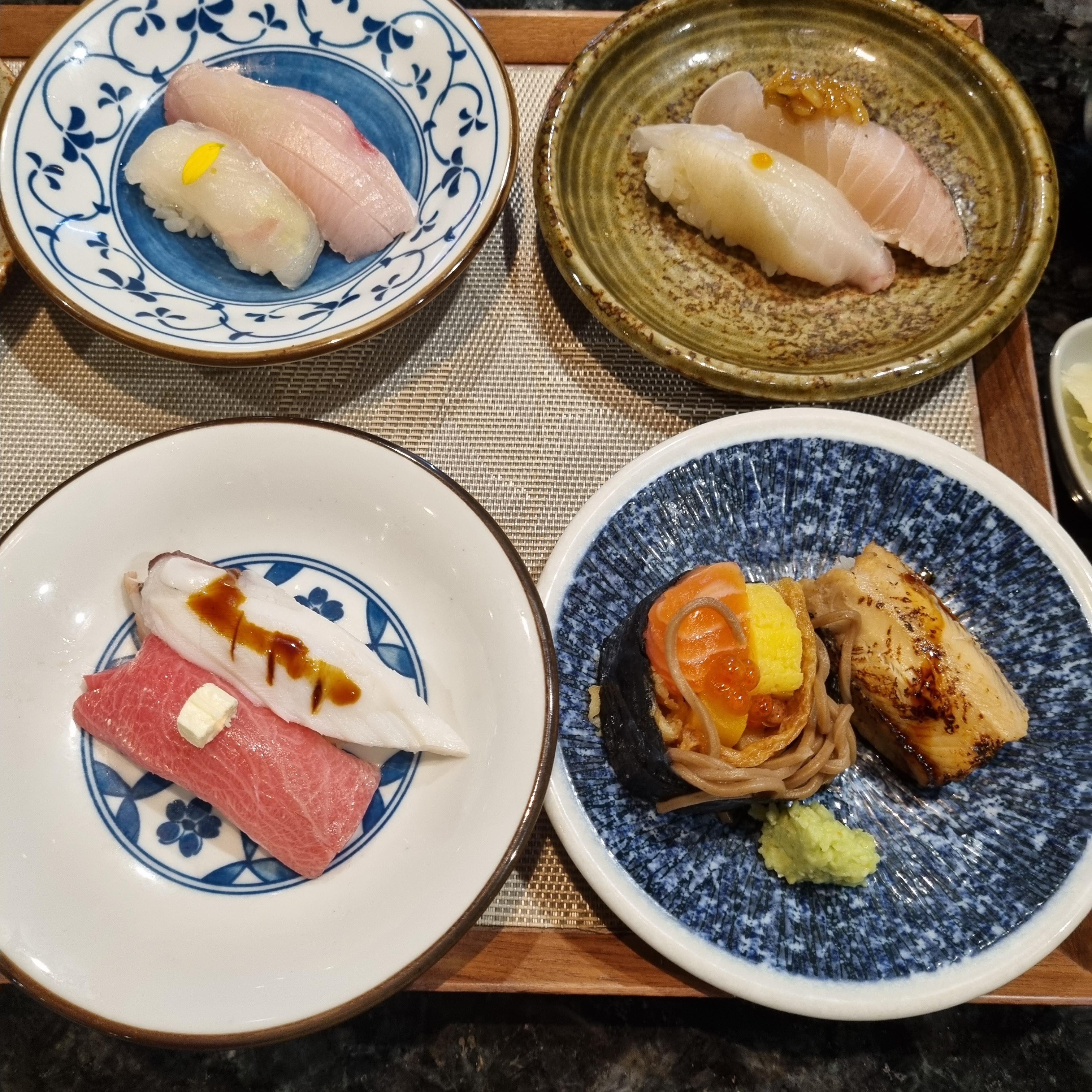 도미마스카와, 광어, 참돔뱃살, 삼치, 방어, 엔가와, 오도로, 문어, 아마우니, 소바마키, 아나고, 청어이소베말이였다. 차완무시는 세트로 주문한게 아니기 때문에 제공되지 않았다.