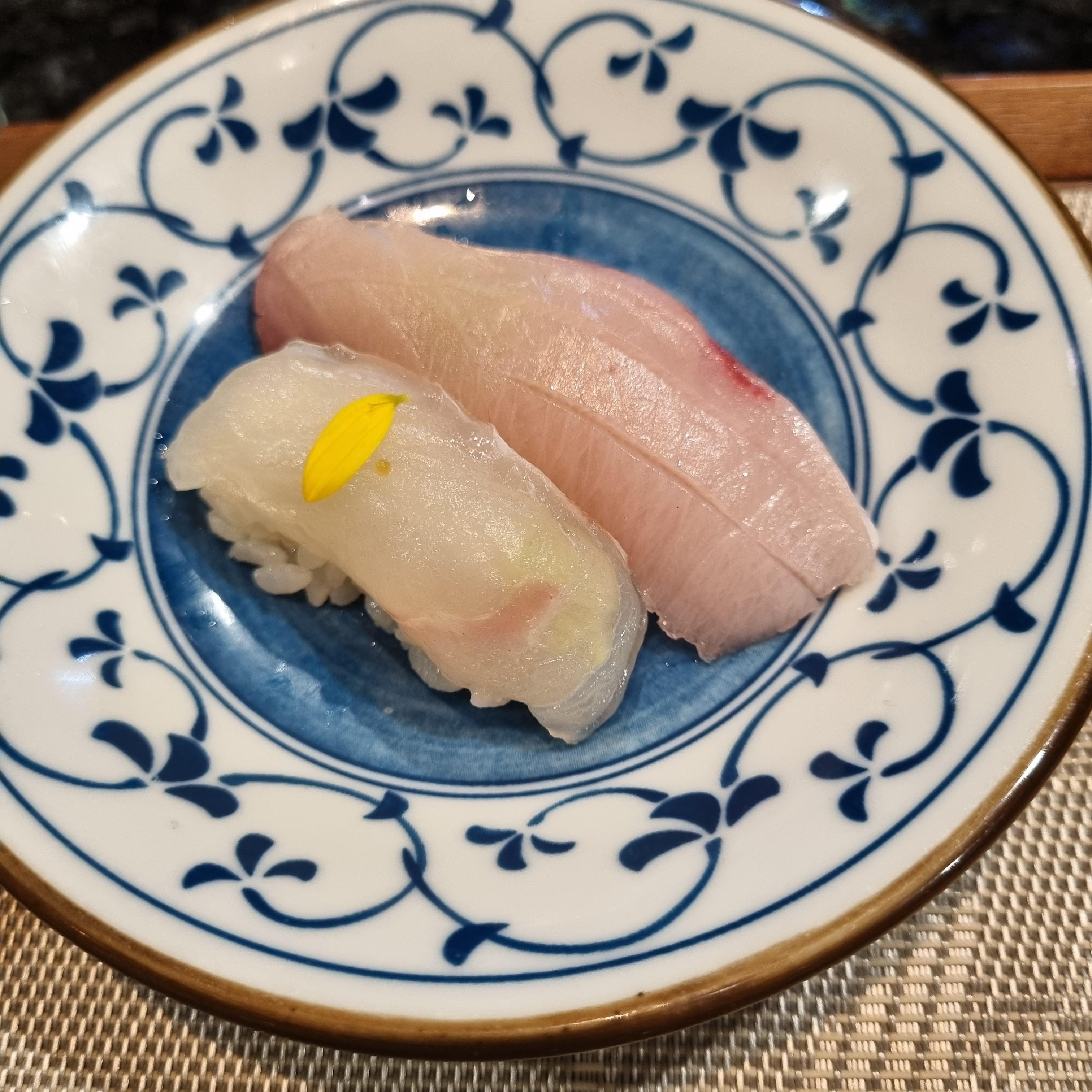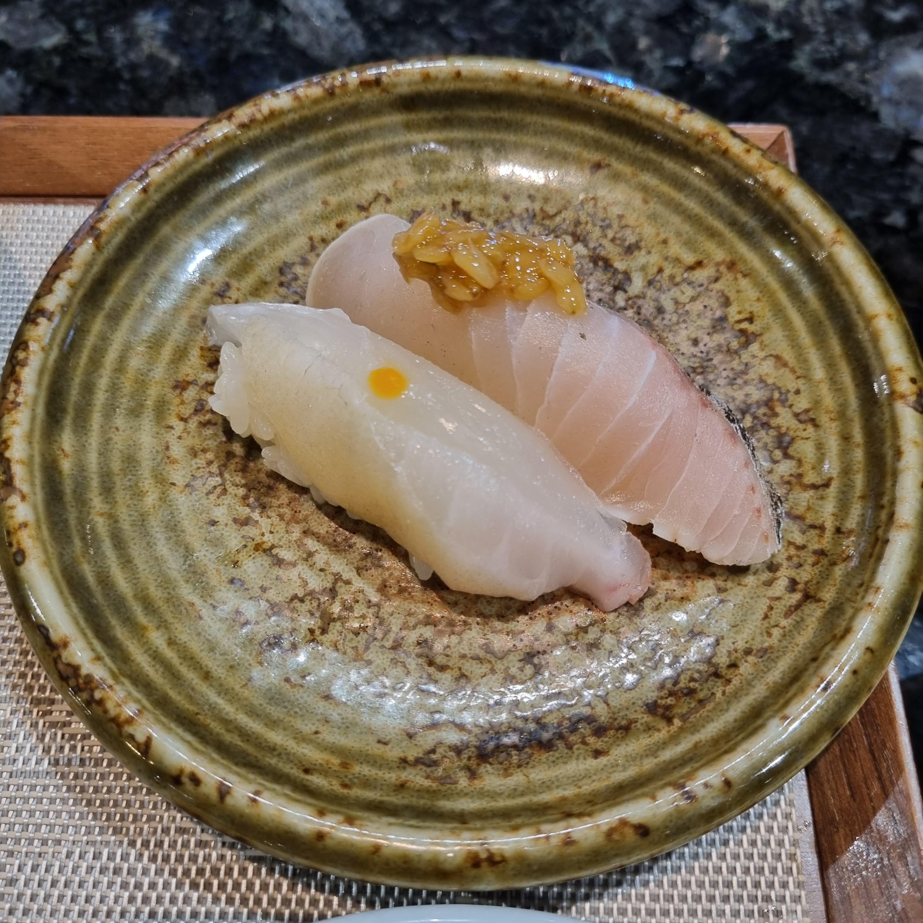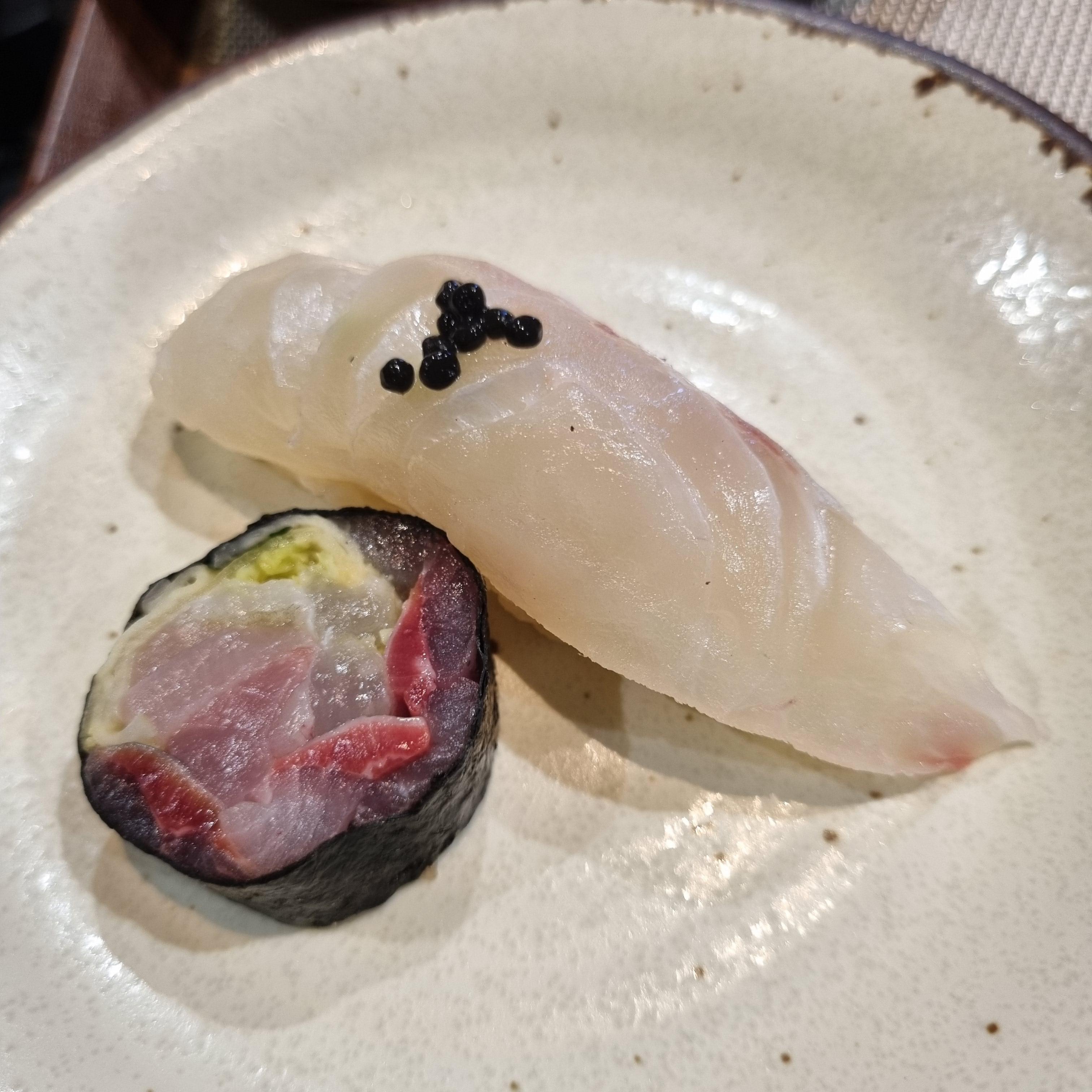 작은 그릇에 스시 2개씩 제공된다. 만듦새는 잘 만들어보였는데, 사실 전반적인 평은 조금 아쉬웠다. 특히나 생선 선도에 비해 밥이 좀 아쉬워서 전반적으로 초밥이 맛있다고 느껴지기가 어려웠다. 속상했다. 바로 제공된 건데 밥이 왜이렇게나 말라있고 좀 차가운지 이해가 안되었다. 포장해온 느낌이랄까. 블로그 리뷰도 많고 평가도 많던데, 좀 의아했고. 가격대비 퀄리티가 만족스럽지 않아서 더욱 아쉬웠다. 그래도 좋아하는 분들이 많을 테니 주관적인 의견은 참고만 하시길! 특히 이날만 그랬을지도 모르니까 말이다.