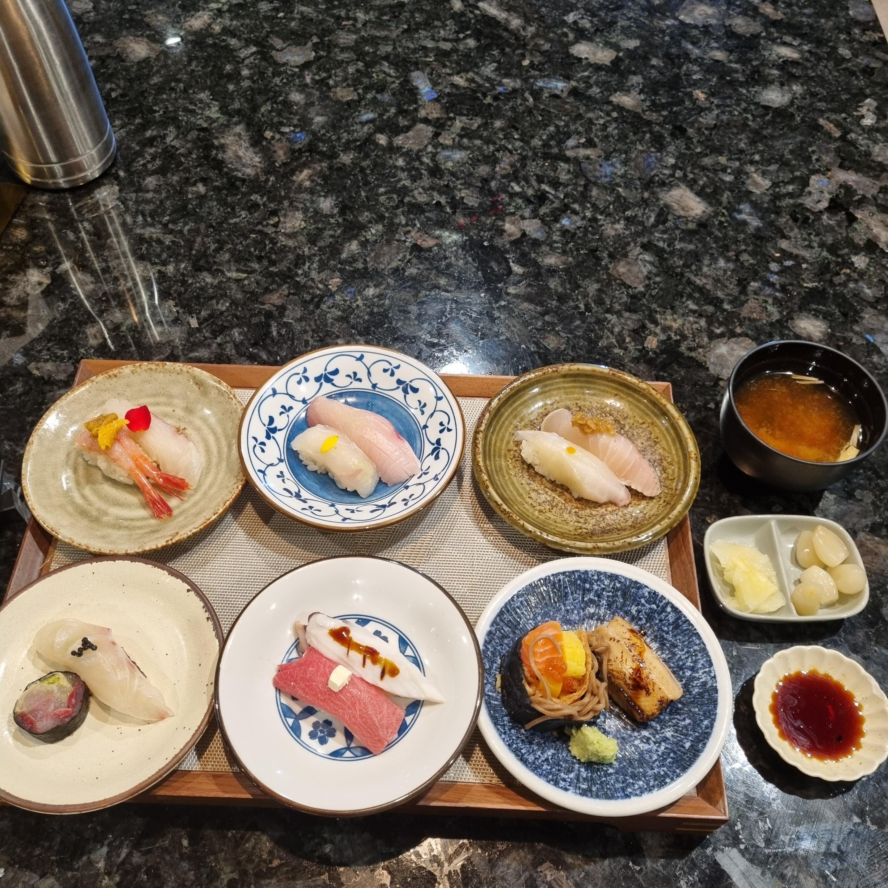 도미마스카와, 광어, 참돔뱃살, 삼치, 방어, 엔가와, 오도로, 문어, 아마우니, 소바마키, 아나고, 청어이소베말이였다. 차완무시는 세트로 주문한게 아니기 때문에 제공되지 않았다.