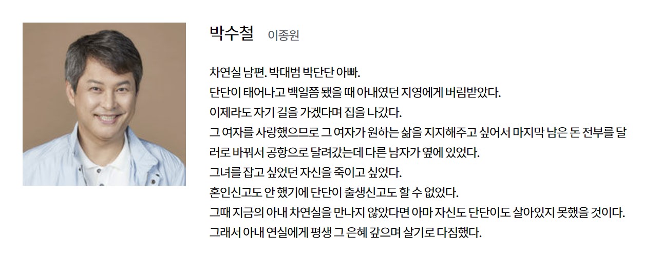 이외에 등장했다가 사라진 인물들도 있다. 홈페이지에는 등장만 했다가 안나와도 모두 언급을 해 놓았더라. 드라마를 중간에 보시는 분들은 이해하기가 좋을 것 같다.