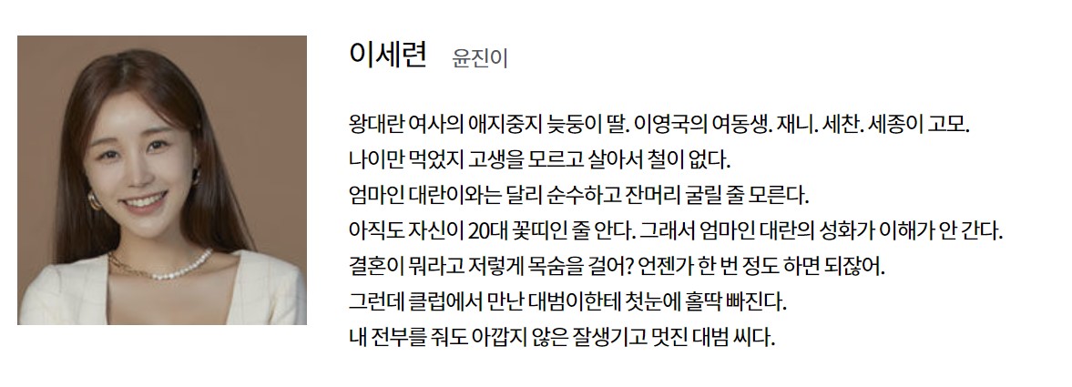 이전 드라마와 다르게 아주 푼수지만 귀엽게 나오신다.