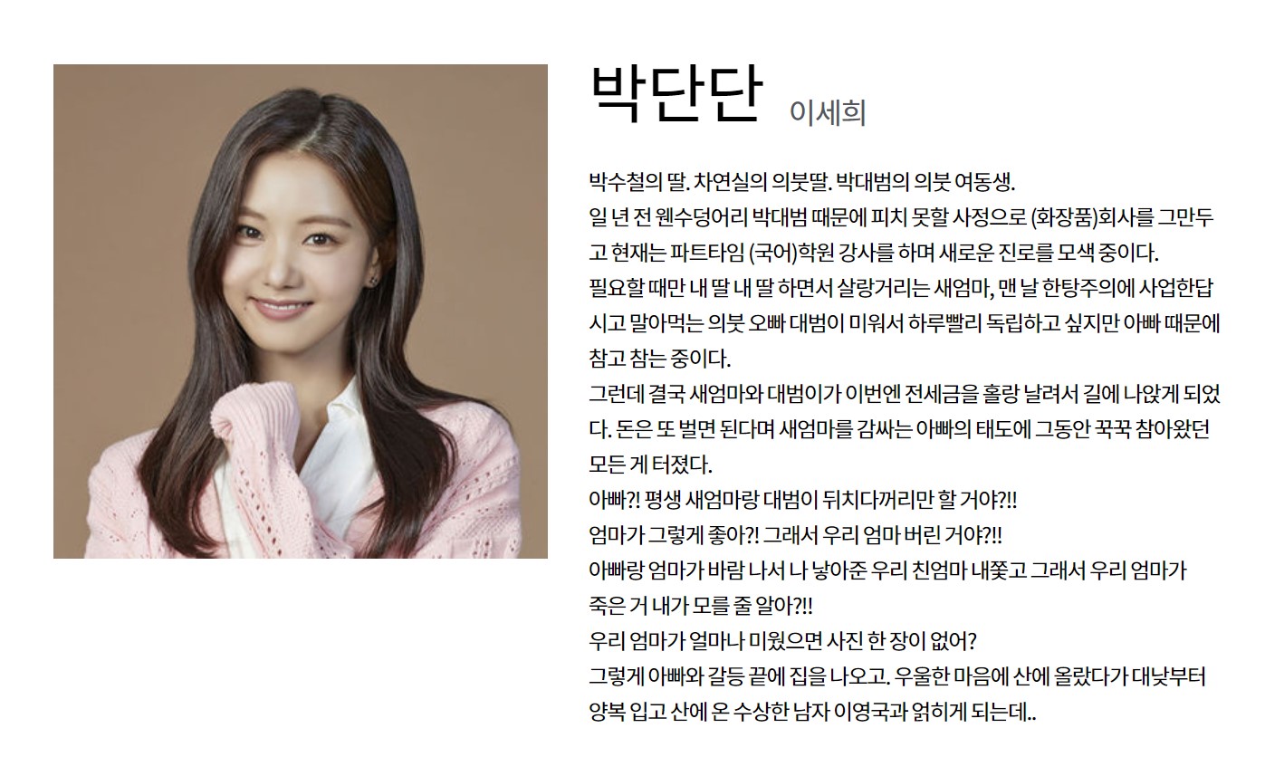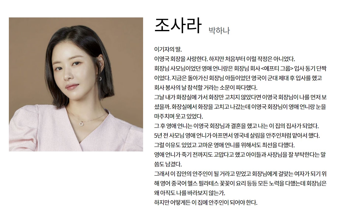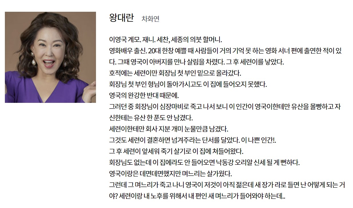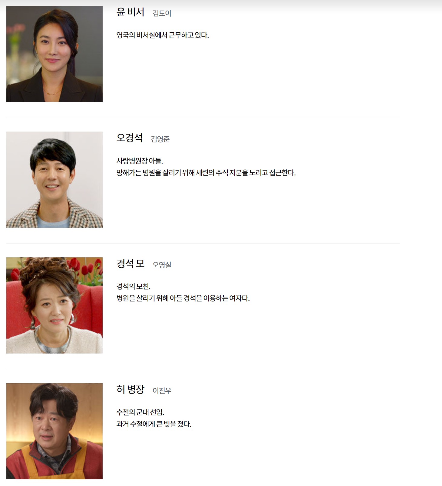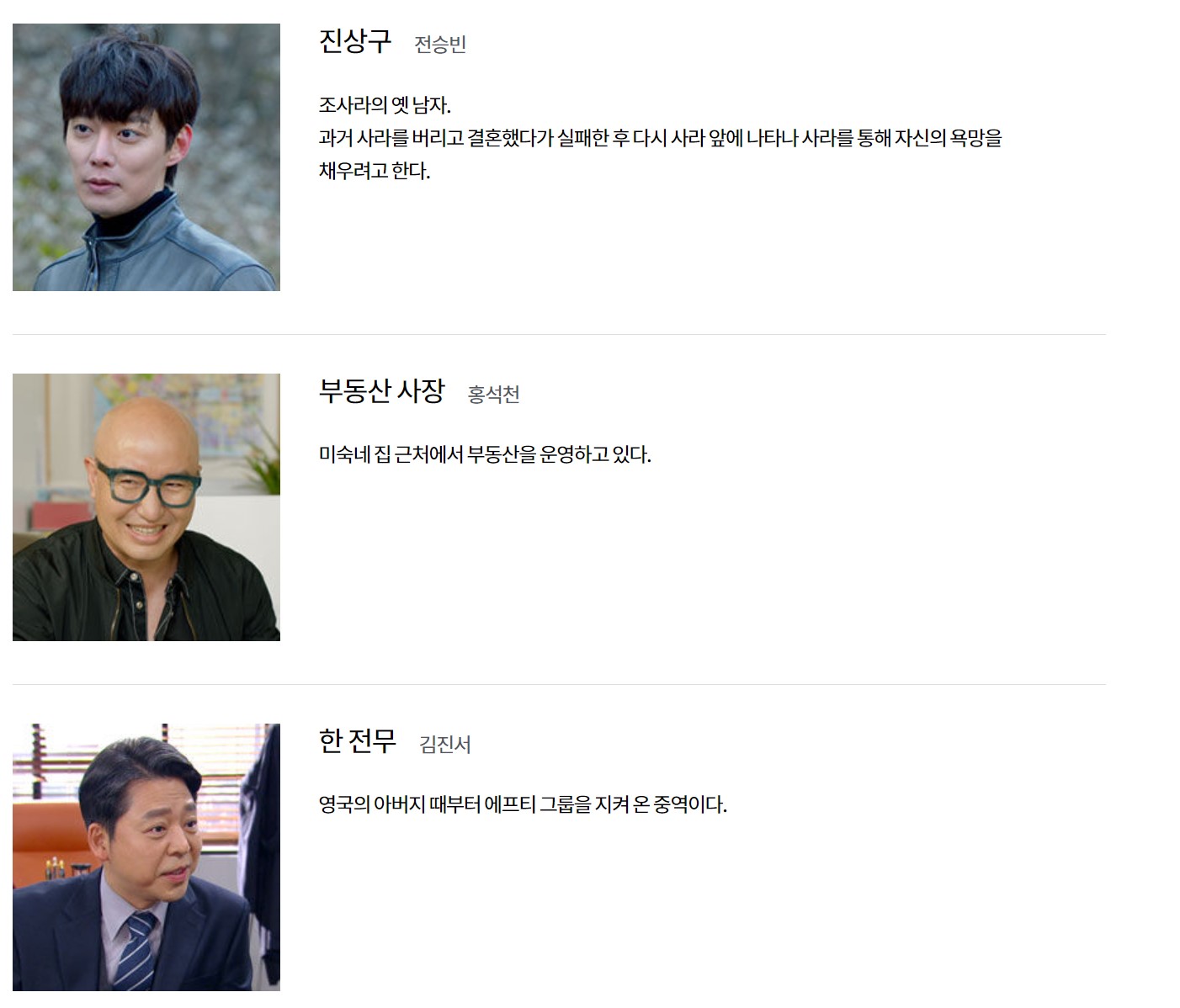 이외에 등장했다가 사라진 인물들도 있다. 홈페이지에는 등장만 했다가 안나와도 모두 언급을 해 놓았더라. 드라마를 중간에 보시는 분들은 이해하기가 좋을 것 같다.