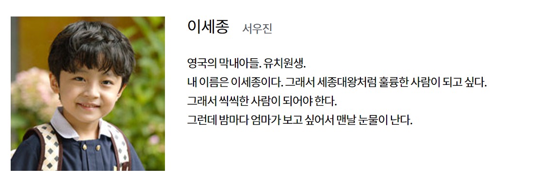 중간에 세종이는 조사라가 영국의 집앞에 놓고 간 아이라는게 밝혀진다.