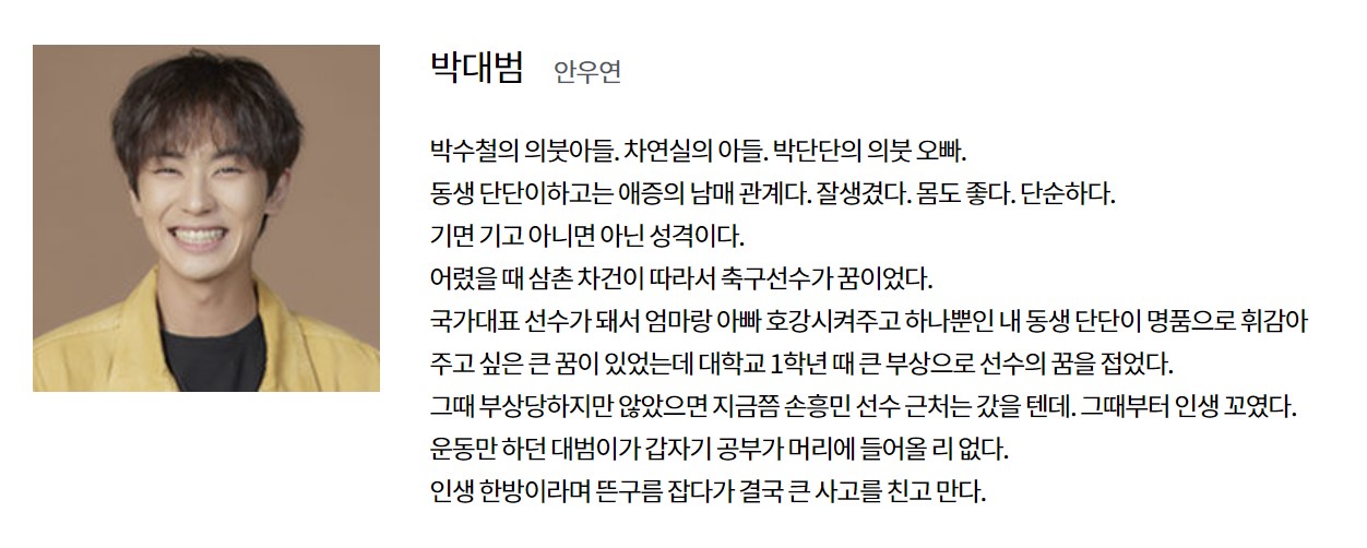 요즘 재미있게 보고 있는 드라마라서, 홈페이지는 초반 인물소개만 있어 여태까지 풀어진 이야기를 섞어서 인물소개를 해보았다. 아무래도 초반에는 아무런 단서가 없기 때문에, 최근에 밝혀진 이야기를 더하면 더 이해하기가 쉬울 것 같아서다.