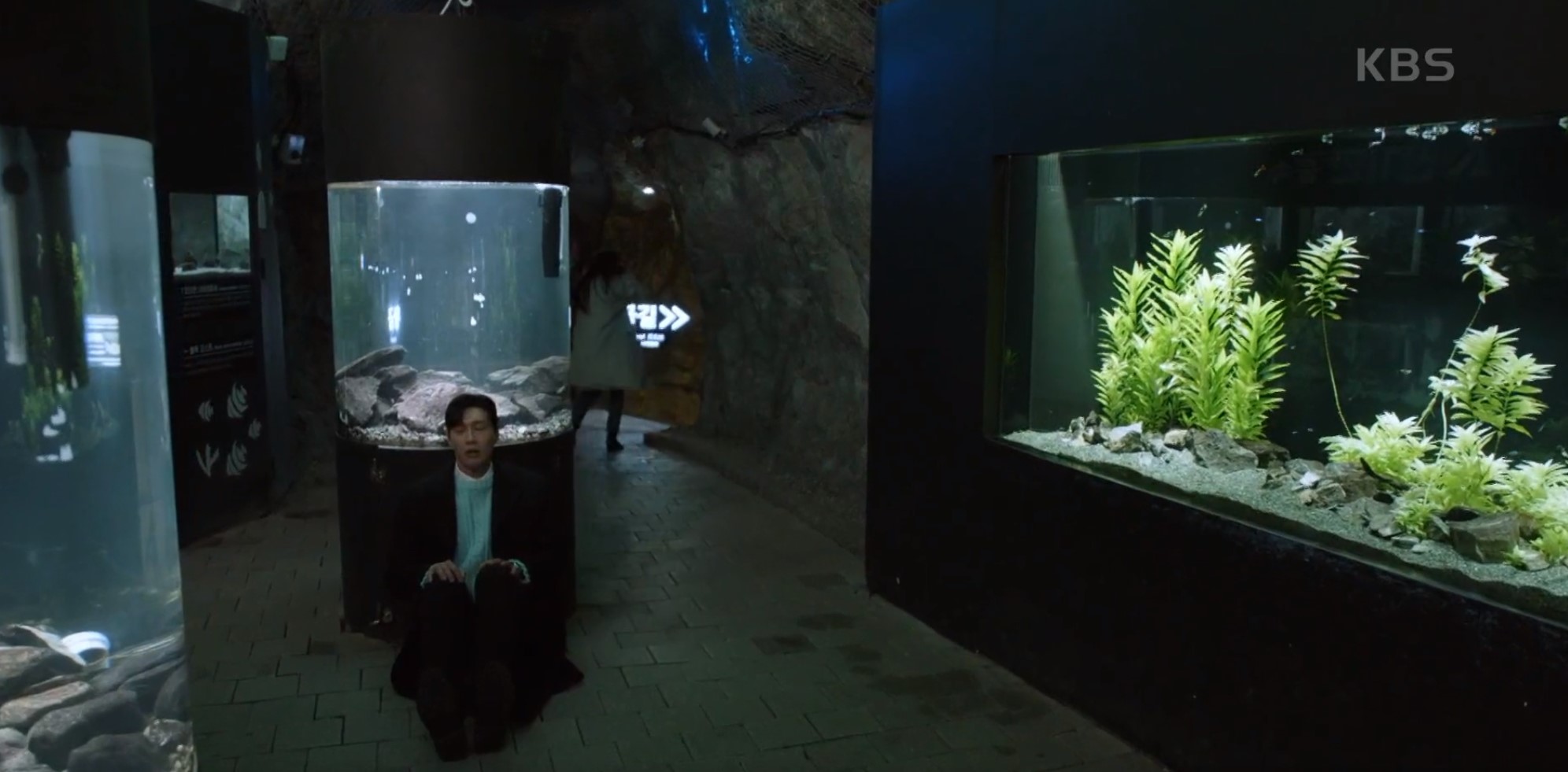 동굴 안에 수족관이 있어서 너무 즐거워하는 단단이.