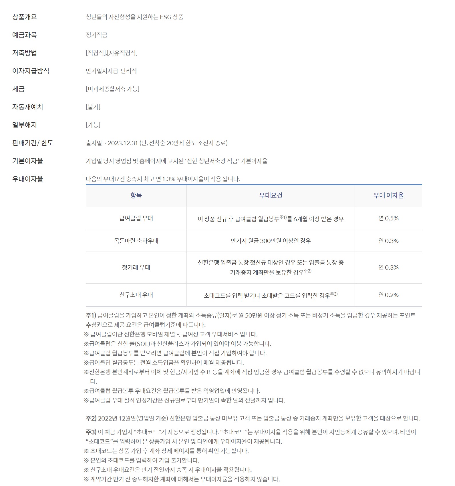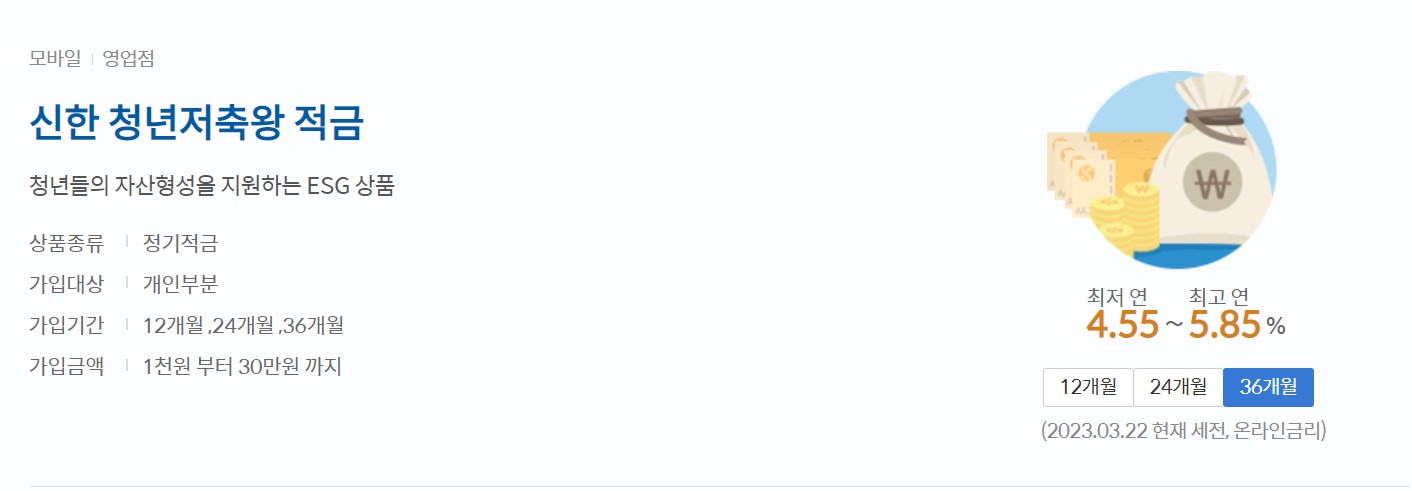 가장 먼저 정리해보려고 하는 것은 신한은행의 청년저축왕 적금이다.