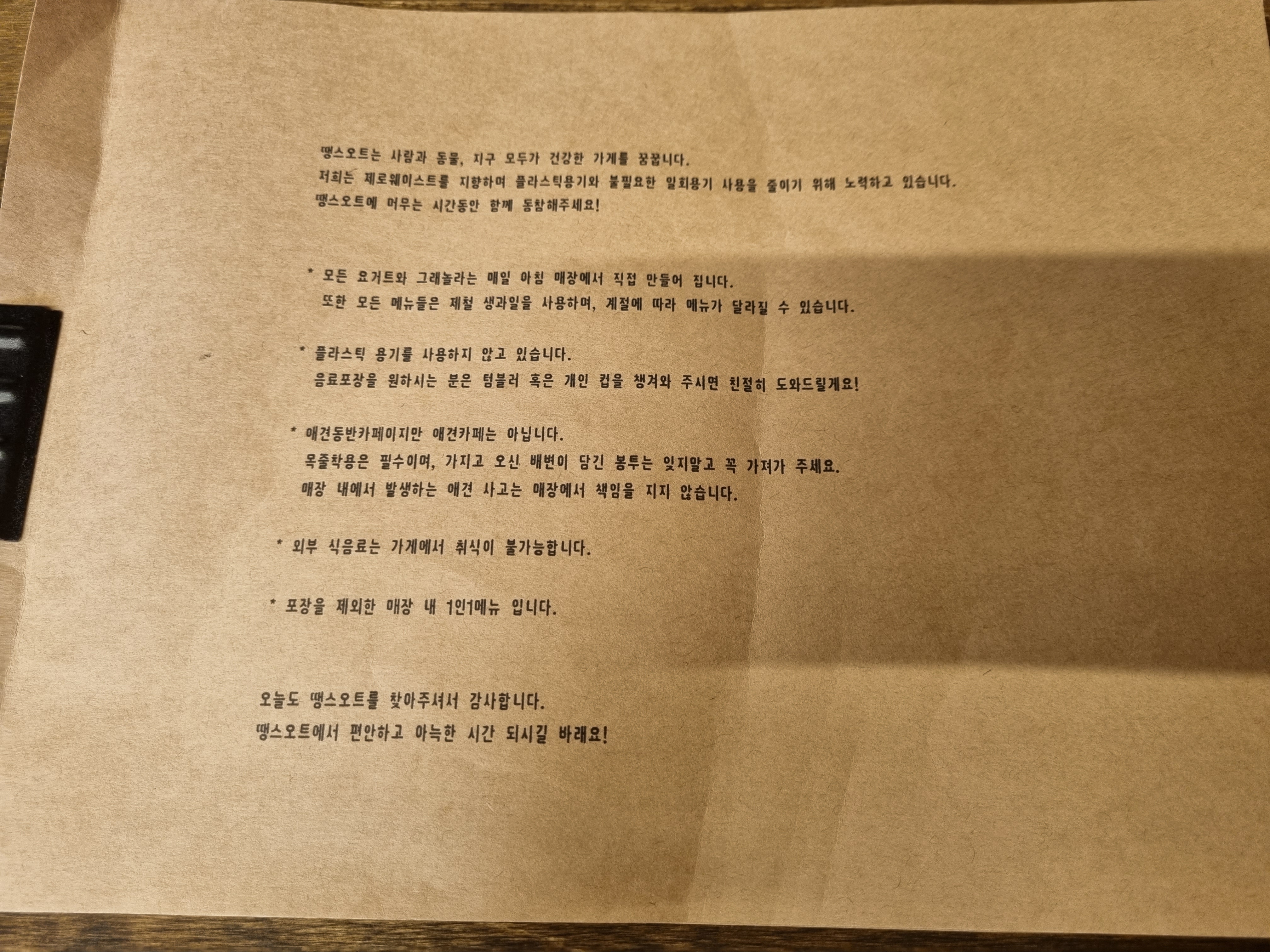 포장을 제외하고는 매장내 식사시 1인 1메뉴를 추천하고 있다.