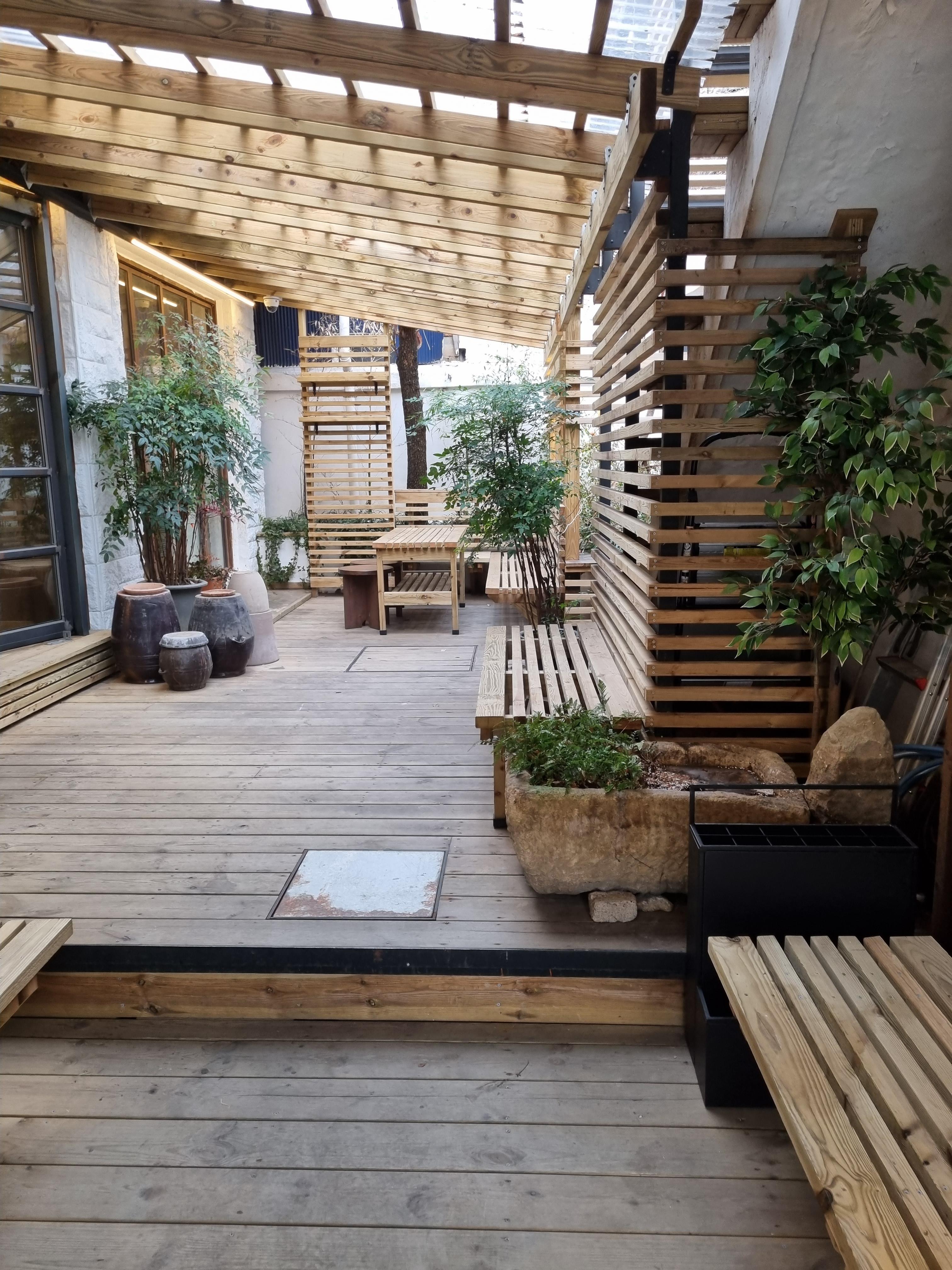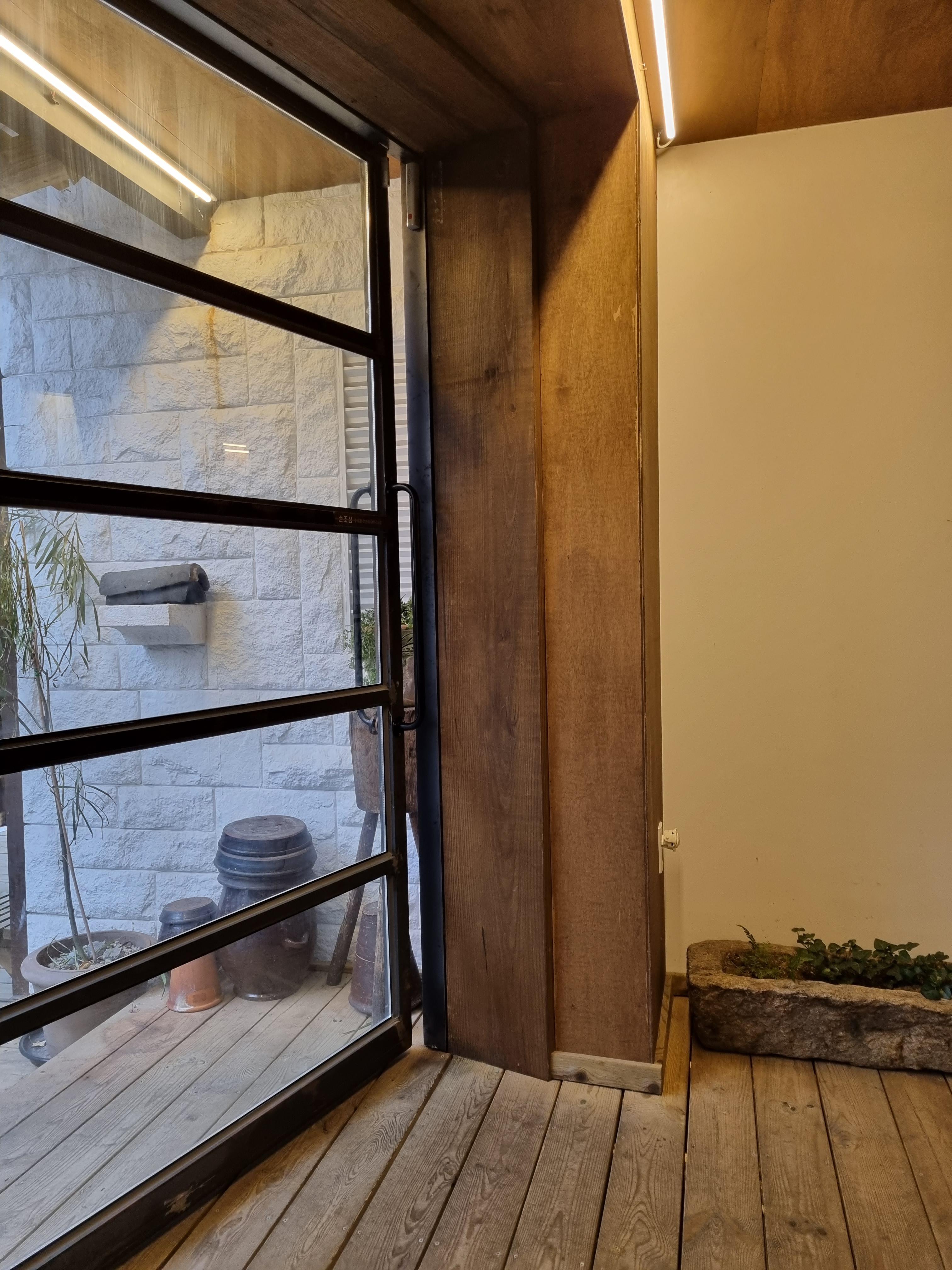 이때 포장을 기다리면서 매장 내부 모습도 잠깐 볼 수 있었고, 정원 같은 외부 모습도 볼 수 있었다. 골목 사이에 위치해 있는데 경복궁쪽에 가면 이런 스타일이 흔하니까 골목골목의 분위기도 느끼고 정말 좋을 것 같았다.