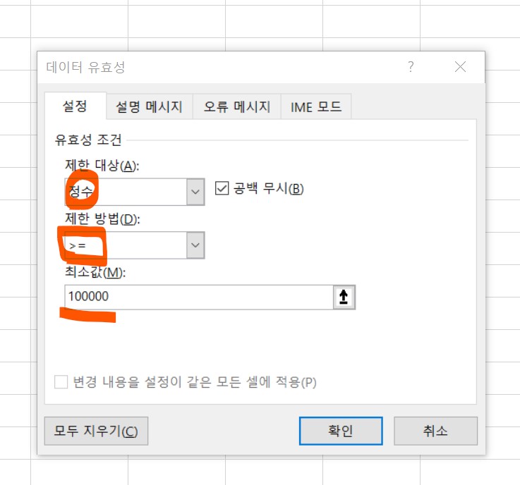 일정 금액 이하로만 금액을 적을 수 있게 정할 수도 있다. 그 이상 넘어가는 데이터는 오류로 나타나도록 말이다.