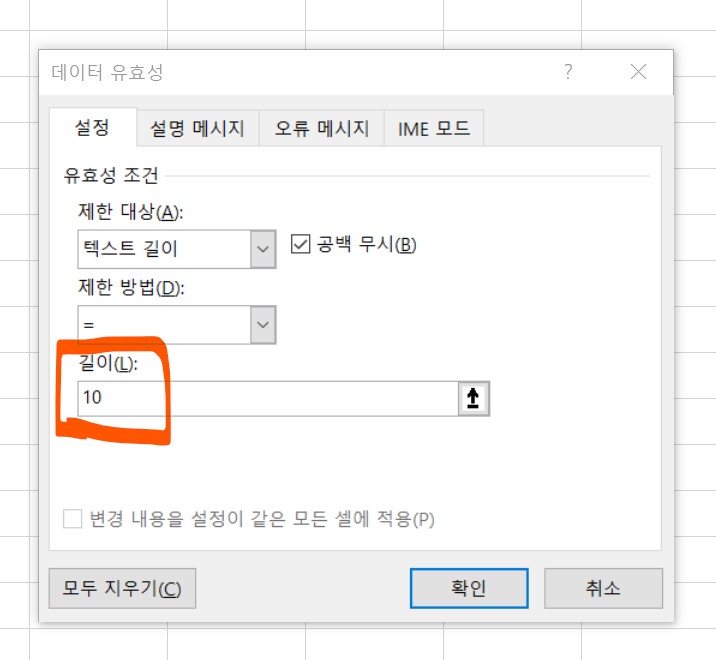 [설정] -> [제한대상] 텍스트길이로 선택한다.
