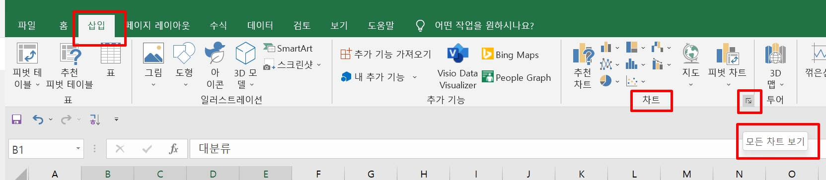 2. [삽입] -> [차트] -> [모든 차트 보기]를 클릭한다.