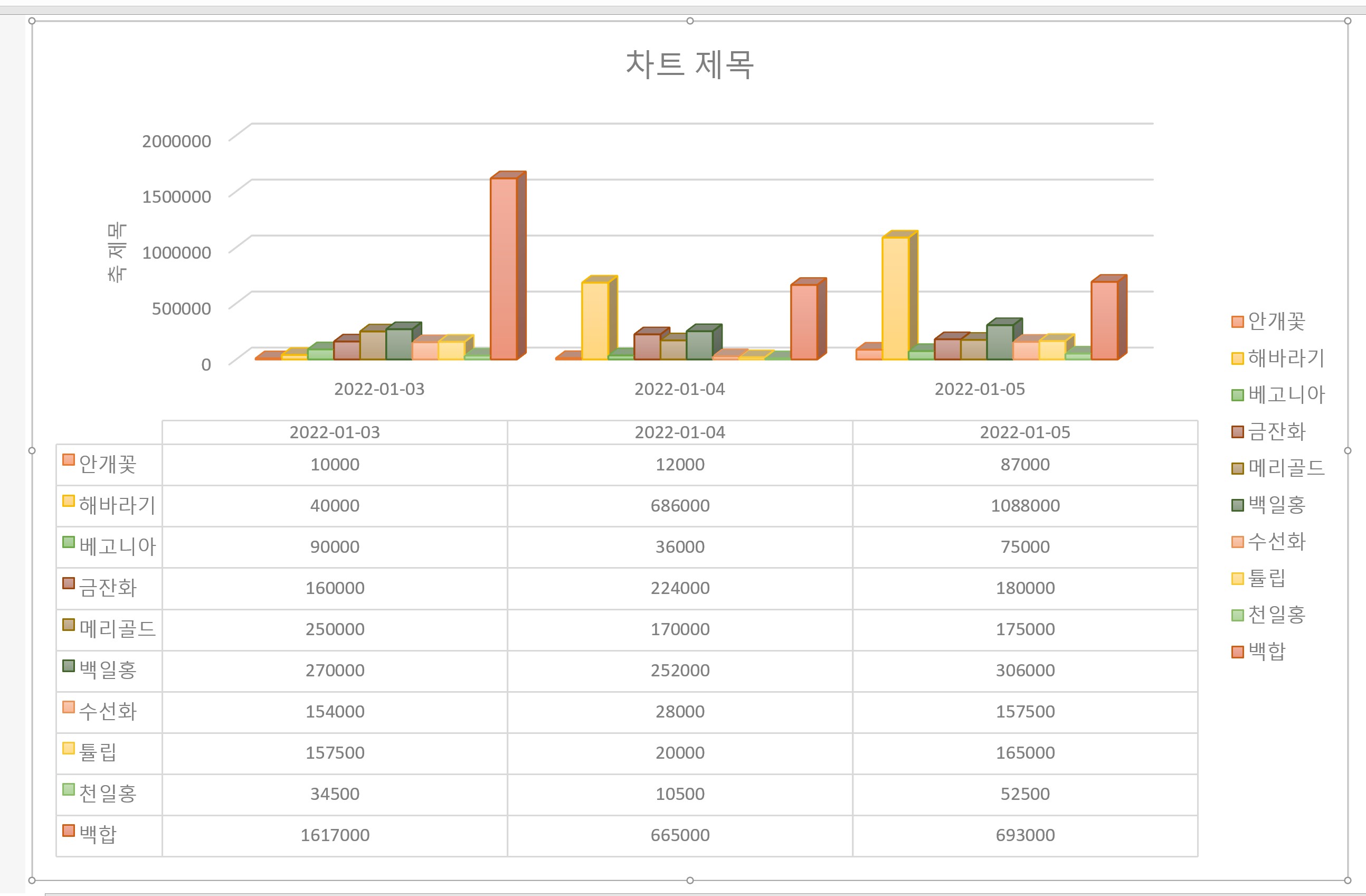 2022.04.10 - [IT/엑셀] - 엑셀 차트 눈금 간격 조절 테이블 레이블 표시 범례 위치 조정