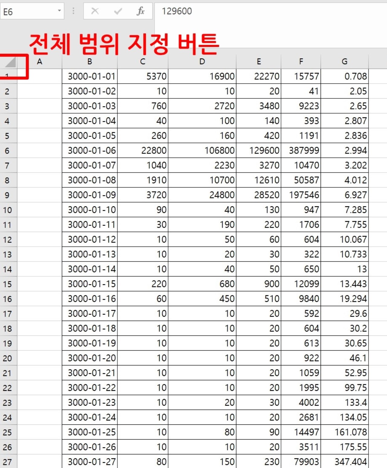 전체 시트 한번에 블락 지정하는 방법
