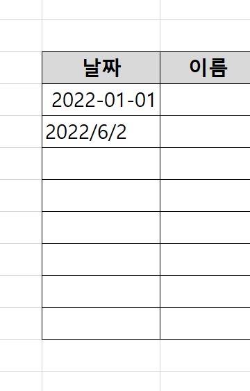 6. 날짜에 날짜를 입력하는데, 2022-1-1처럼 입력해도 되고, 2022/6/2 처럼 슬래시로 입력해도 된다.