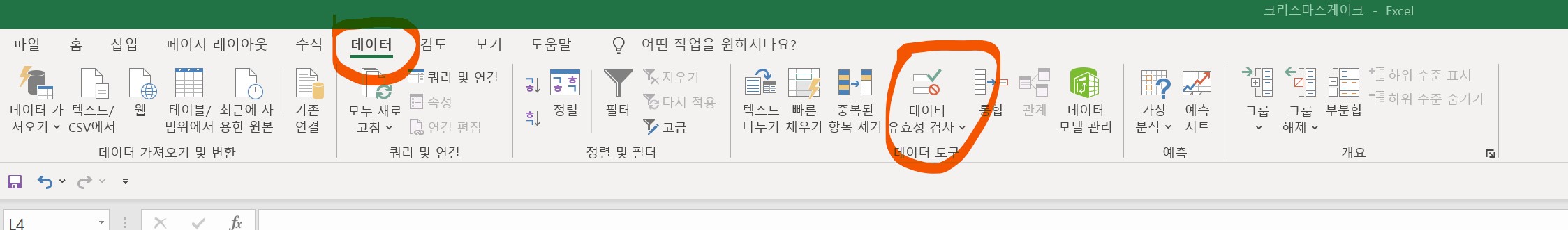 데이터 유효성 검사를 들어가는 방법은 동일하다.