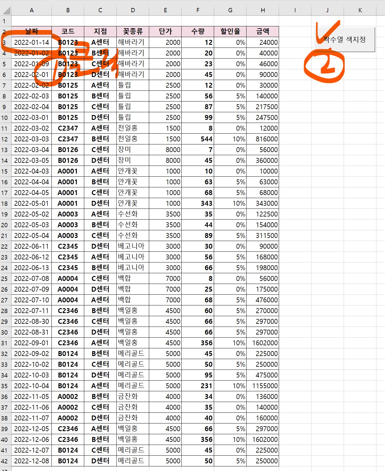 그럼 완성된 단추를 이용해서 데이터에 매크로를 적용해보겠다.